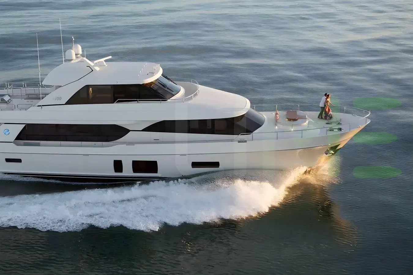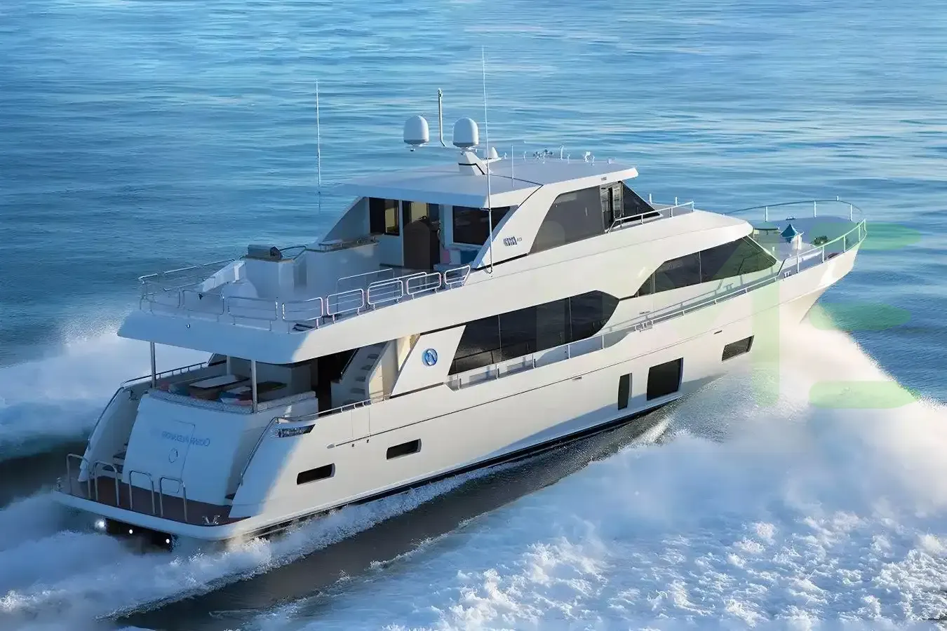 Built by Ocean Alexander in Taiwan, this stunning yacht boasts a length of 100' 2" (30.53m), a beam of 23' (7.01m), and a draft of 6' 5" (1.96m).