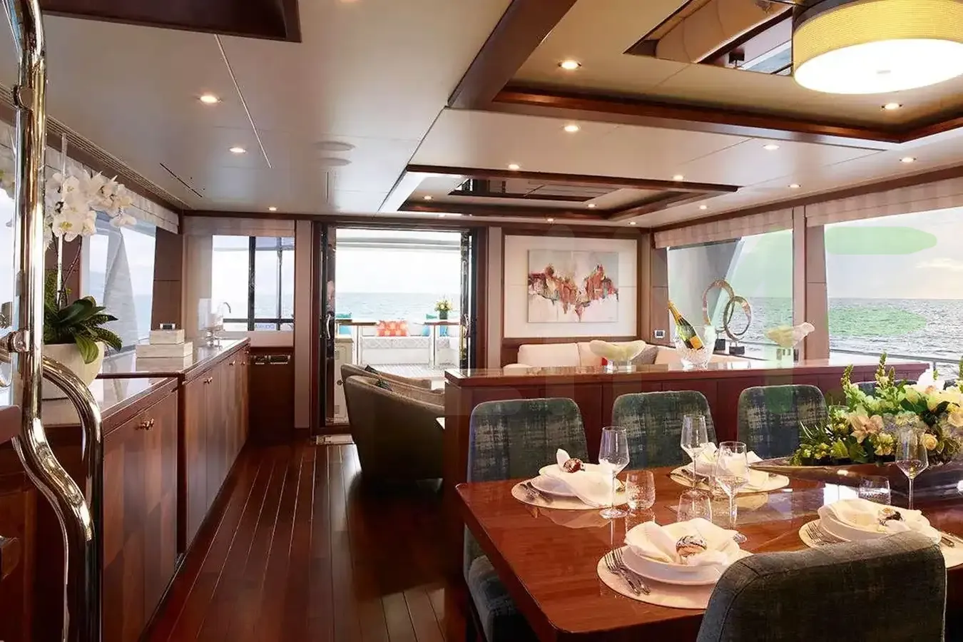 With a gross tonnage of 173, the BELLA LISA yacht for charter provides ample interior space for enjoyment. BELLA LISA offers accommodations for up to 8 guests in 5 lavishly appointed staterooms. She can also carry up to 5 crew onboard, including the Captain, to ensure a relaxed luxury yacht charter experience. The interior design by Evan K Marshall exudes a sense of luxury, seamlessly blending comfort with style.
