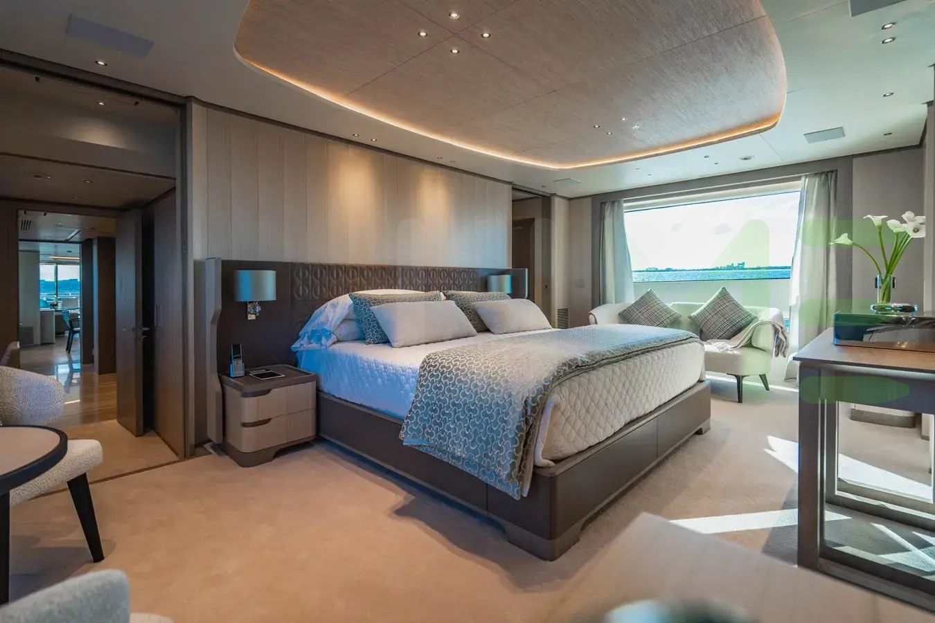 - Full-beam master cabin with dressing room and study