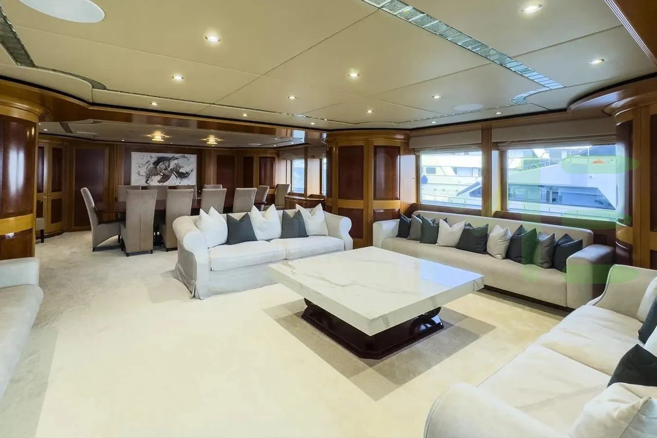 With a gross tonnage of 372, the BENIK yacht for charter provides ample interior space for enjoyment. BENIK offers accommodations for up to 10 guests in 6 lavishly appointed staterooms. She can also carry up to 8 crew onboard, including the Captain, to ensure a relaxed luxury yacht charter experience. The interior design by Omega Architects exudes a sense of luxury, seamlessly blending comfort with style.