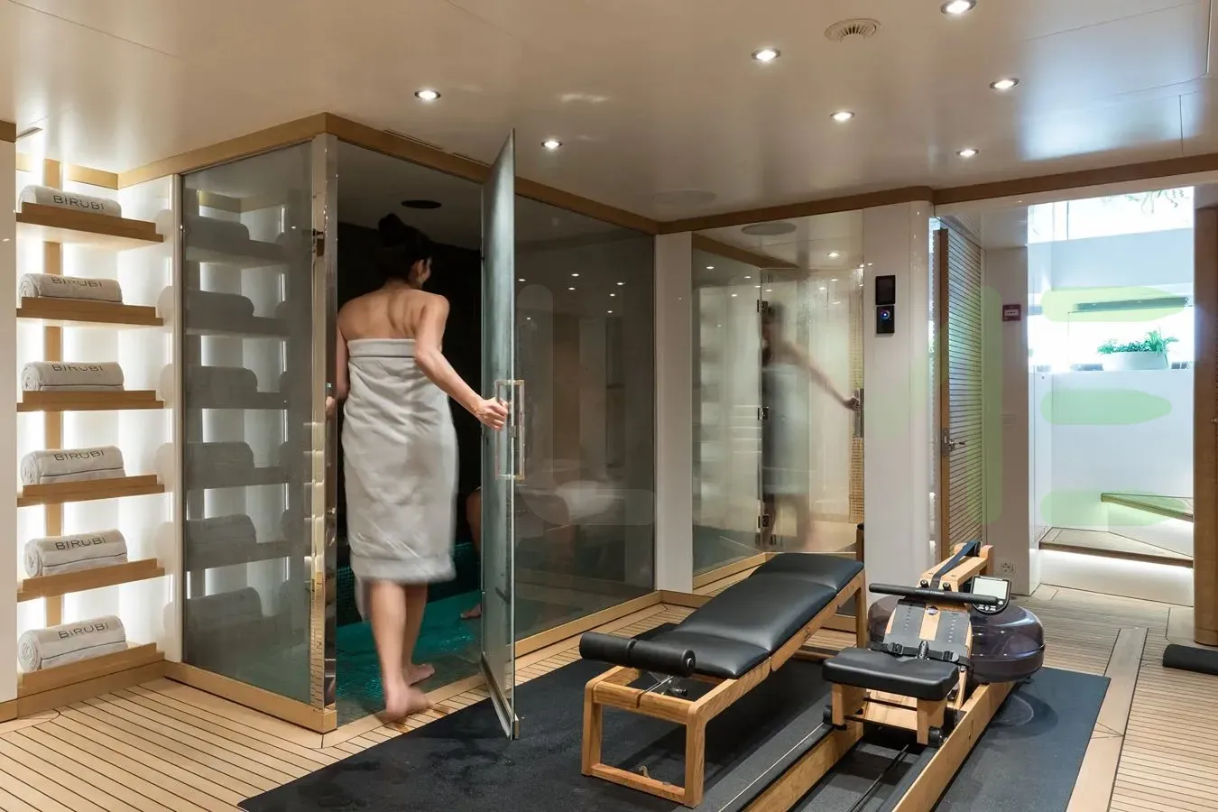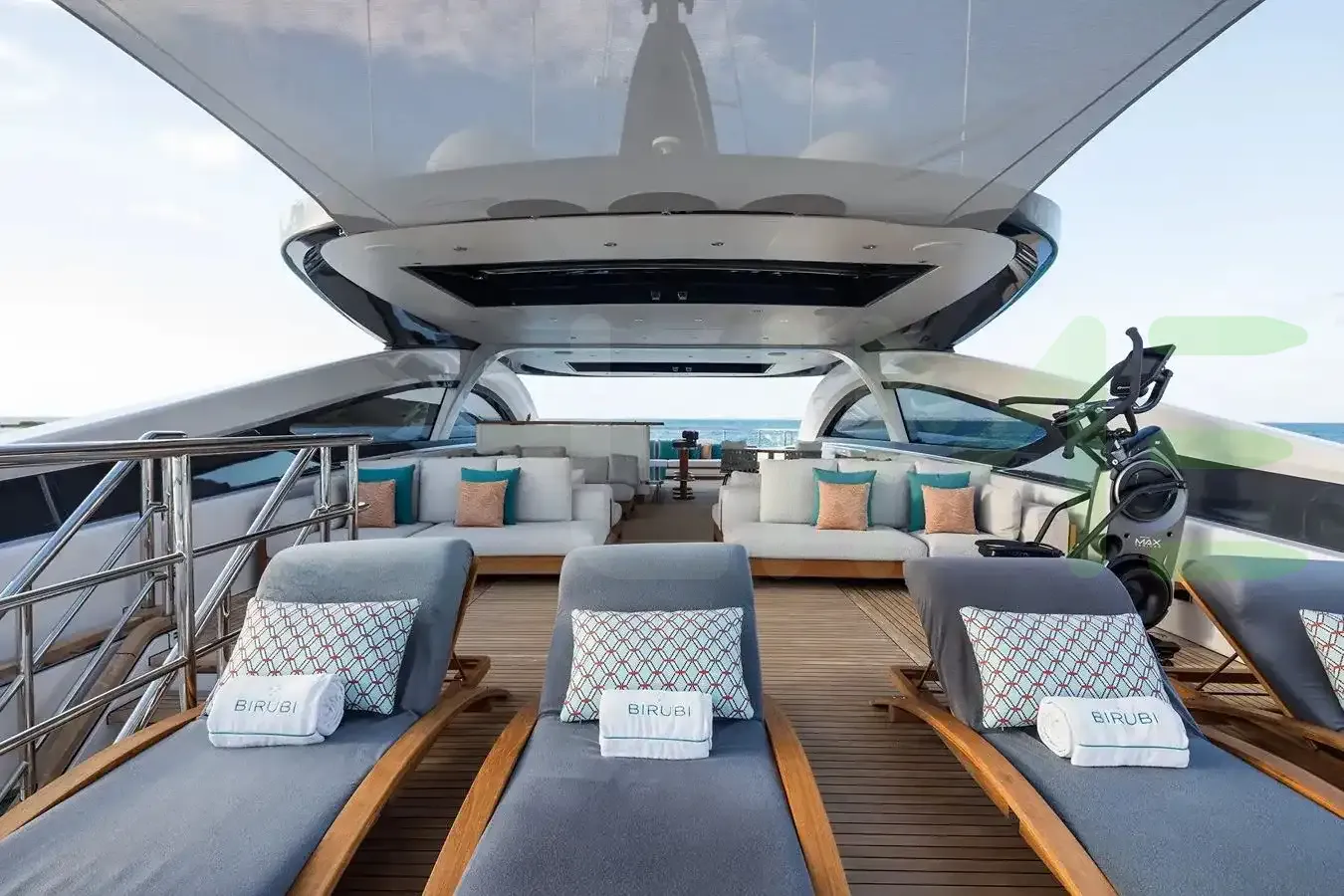 A charter on Birubi is comfortable and convenient thanks to the provided amenities including a sauna to help you detox and regenerate. Make your day truly exceptional at the beach club plus a gym with all the latest equipment is available for a good work out. Sit back with a glass of champagne in the deck jacuzzi.