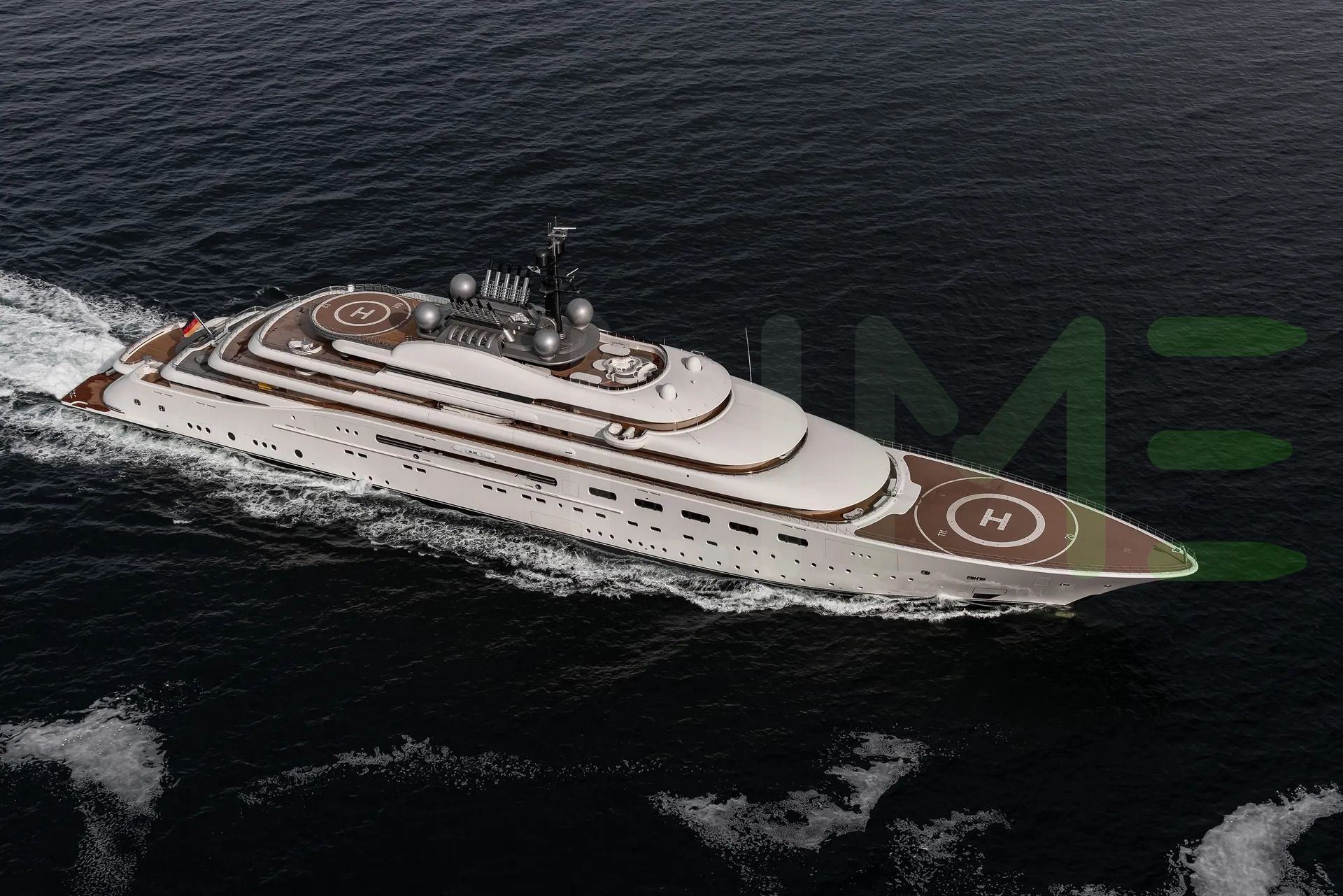 Her features include a helipad, steam room, spa, beauty salon, satellite communications, underwater lights, beach club, gym, deck jacuzzi, WiFi and air conditioning.