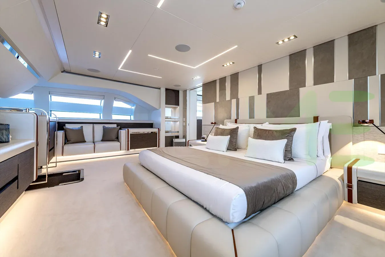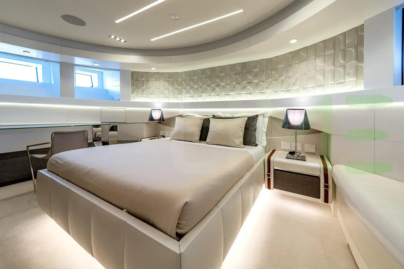 With a gross tonnage of 394, the CABO yacht for charter provides ample interior space for enjoyment. CABO offers accommodations for up to 8 guests . She can also carry up to 7 crew onboard, including the Captain, to ensure a relaxed luxury yacht charter experience. The interior design by Fulvio De Simoni Yacht Design exudes a sense of luxury, seamlessly blending comfort with style.