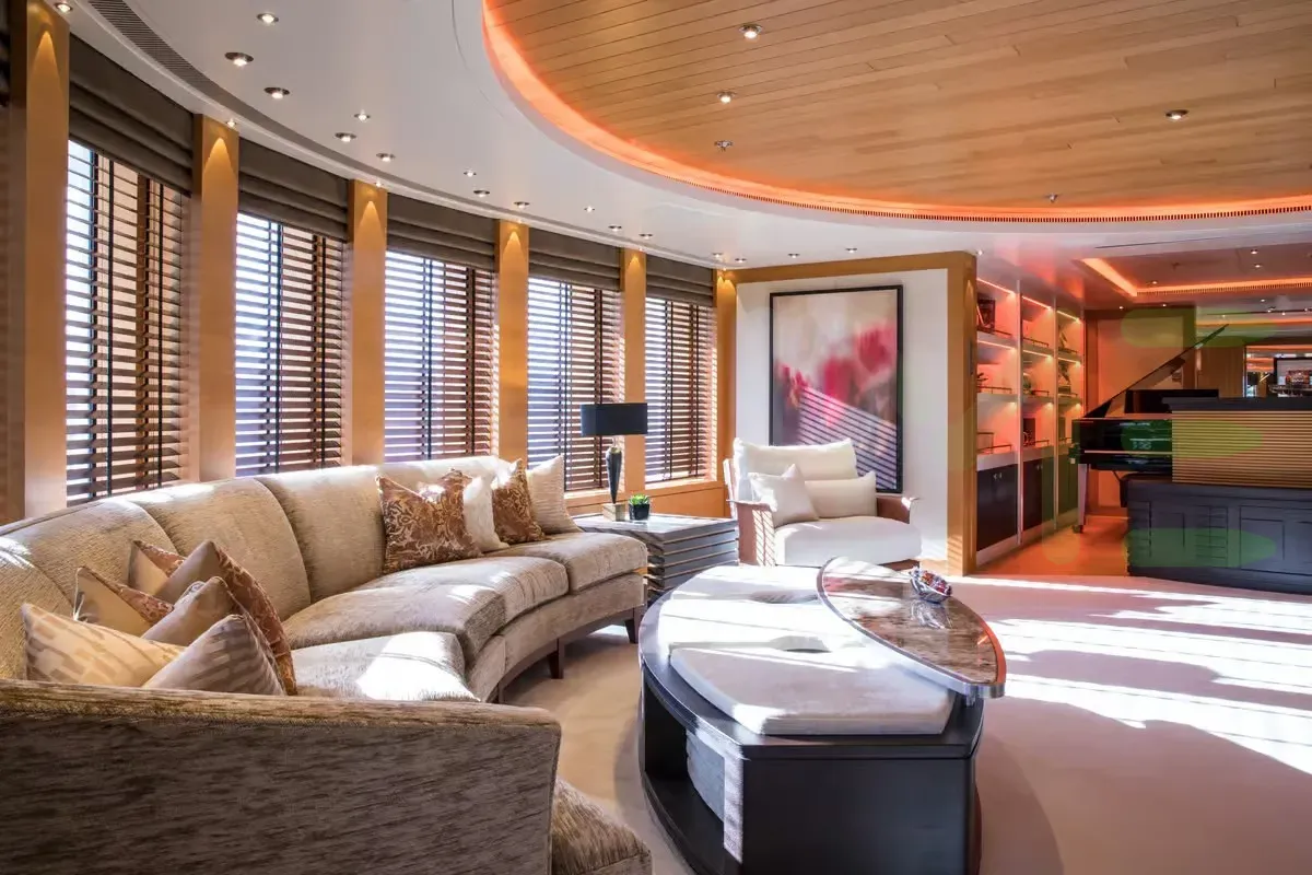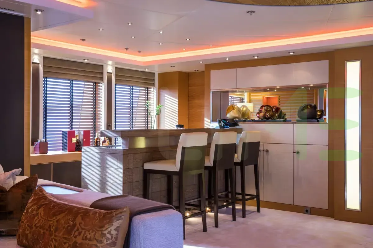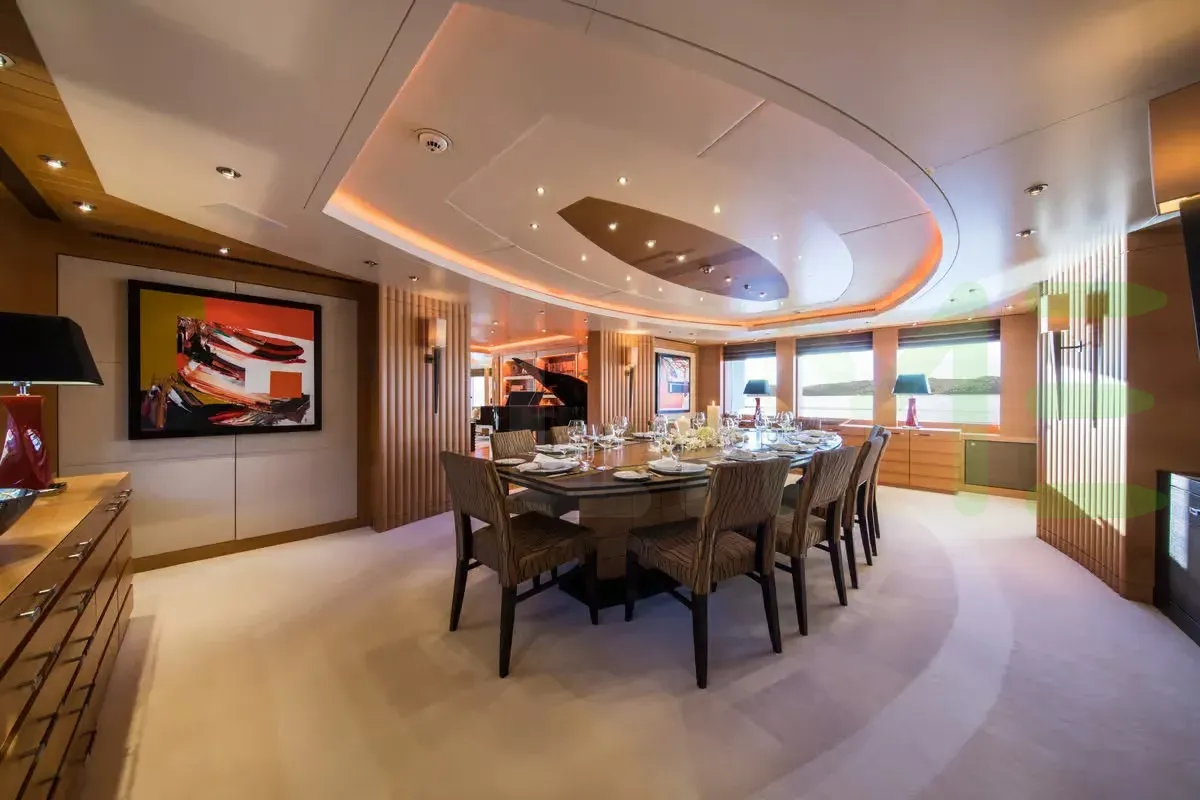 With a gross tonnage of 1,182, the CAIPIRINHA yacht for charter provides ample interior space for enjoyment. CAIPIRINHA offers accommodations for up to 12 guests in 6 lavishly appointed staterooms. She can also carry up to 14 crew onboard, including the Captain, to ensure a relaxed luxury yacht charter experience. The interior design by Mark Berryman Design Ltd exudes a sense of luxury, seamlessly blending comfort with style.
