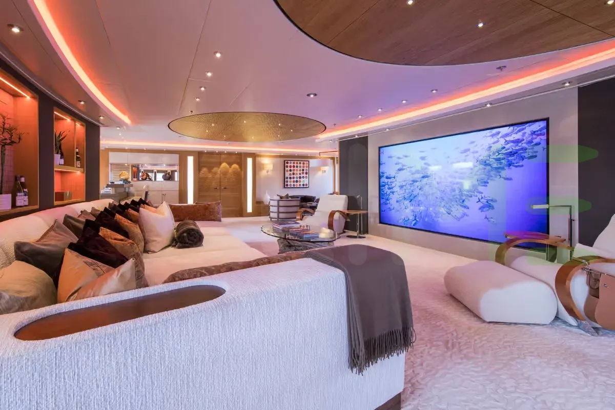 Her features include a movie theatre, gym, deck jacuzzi, WiFi and air conditioning.