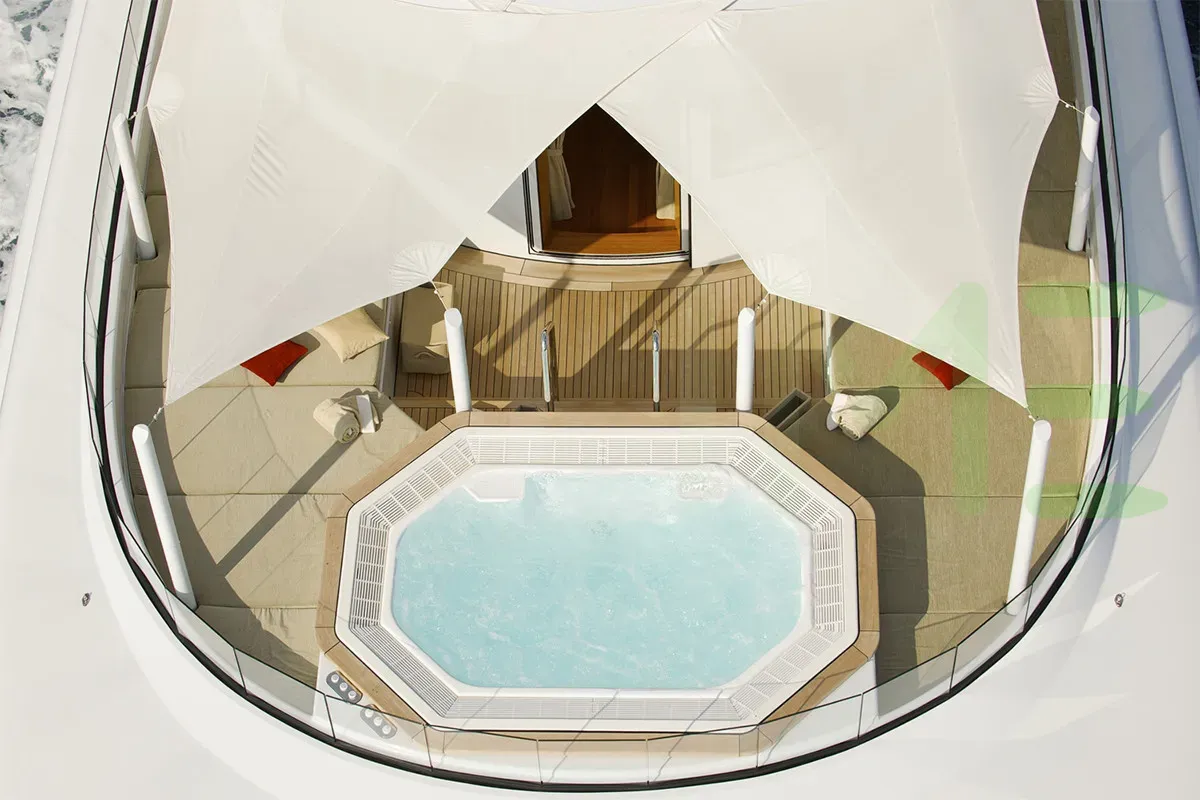 The exterior, designed by Espen Øino International, captures your attention with beautiful lines and impeccable craftsmanship. Whether you're lounging on the spacious decks or enjoying water sports in a secluded anchorage, the CAIPIRINHA yacht for charter, built of Steel and Aluminium, offers a wealth of opportunities for relaxation and adventure.
