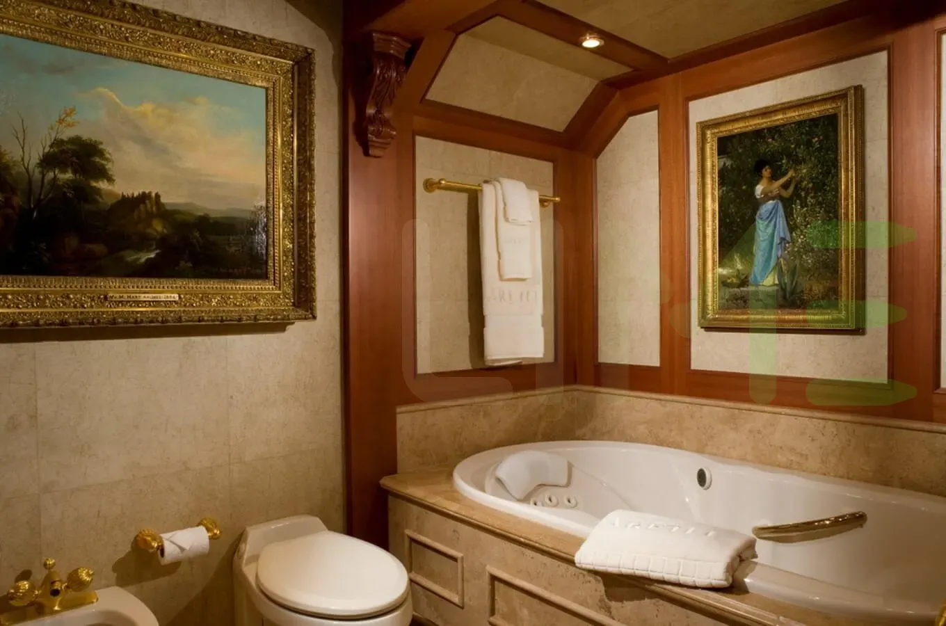 With a gross tonnage of 334, the CASUAL WATER II yacht for charter provides ample interior space for enjoyment. CASUAL WATER II offers accommodations for up to 10 guests in 5 lavishly appointed staterooms. She can also carry up to 8 crew onboard, including the Captain, to ensure a relaxed luxury yacht charter experience. The interior design by Douglas Richey Designs exudes a sense of luxury, seamlessly blending comfort with style.