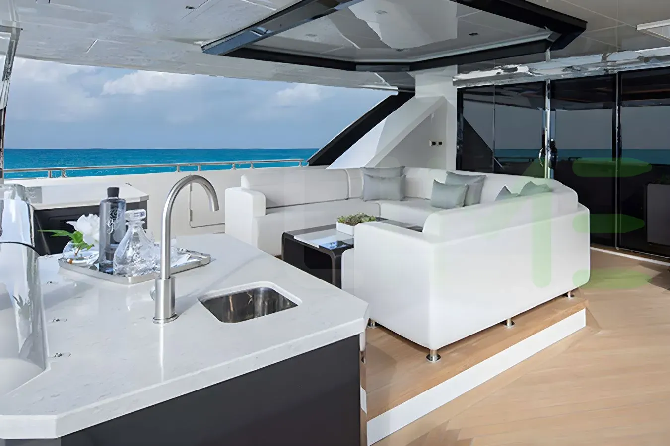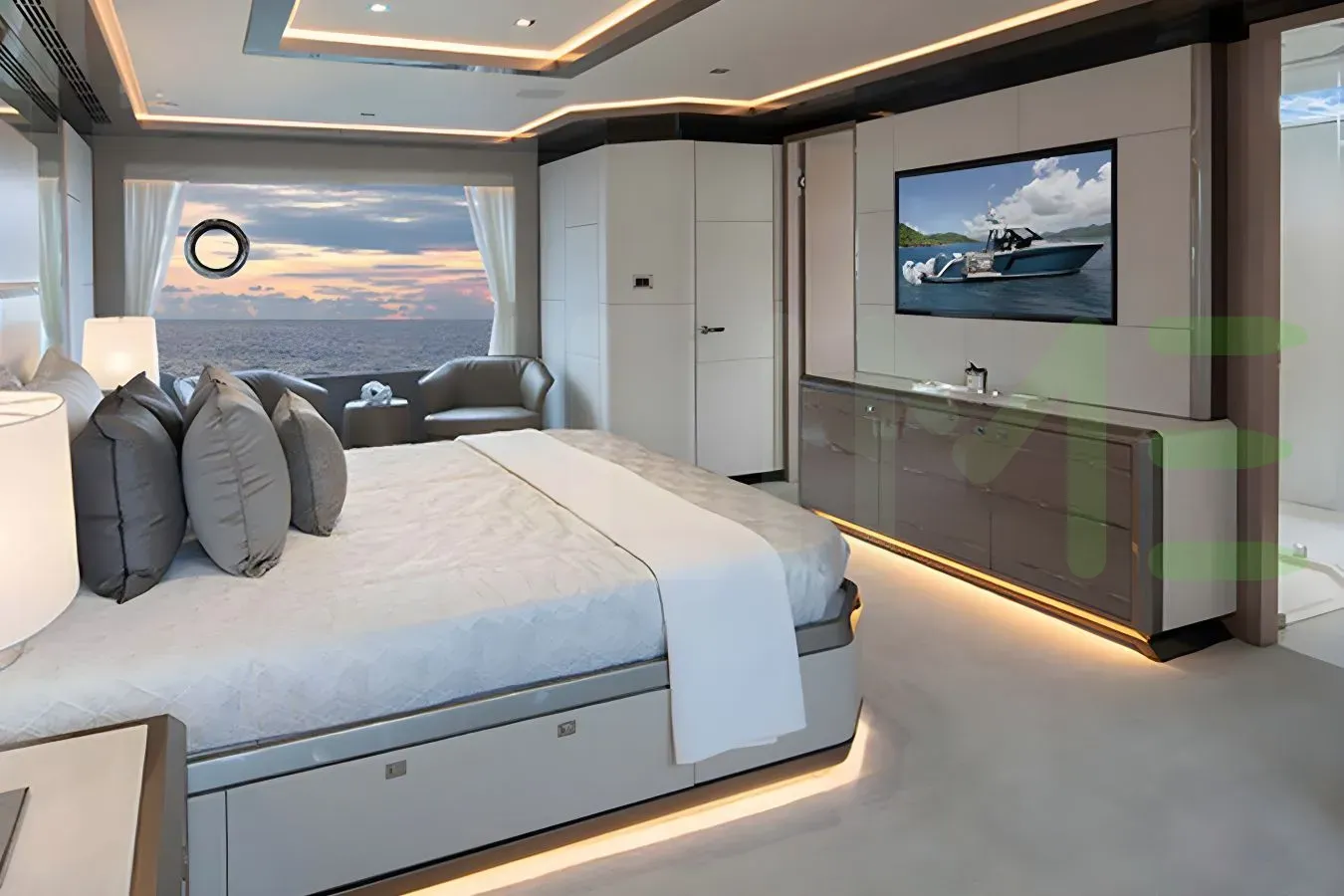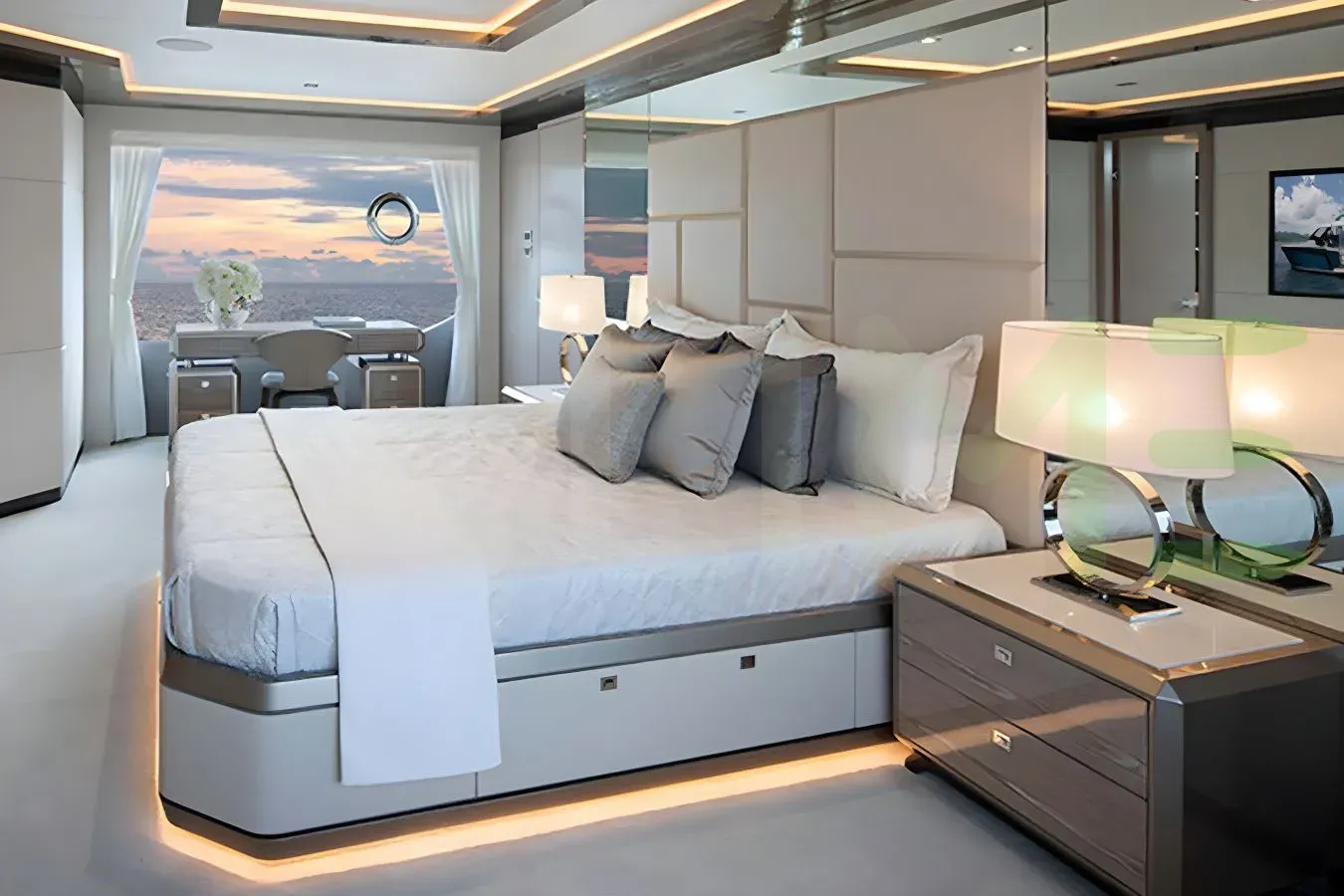 With a gross tonnage of 199, the CATALINA yacht for charter provides ample interior space for enjoyment. CATALINA offers accommodations for up to 10 guests . She can also carry up to 5 crew onboard, including the Captain, to ensure a relaxed luxury yacht charter experience. The interior design by Evan K Marshall exudes a sense of luxury, seamlessly blending comfort with style.