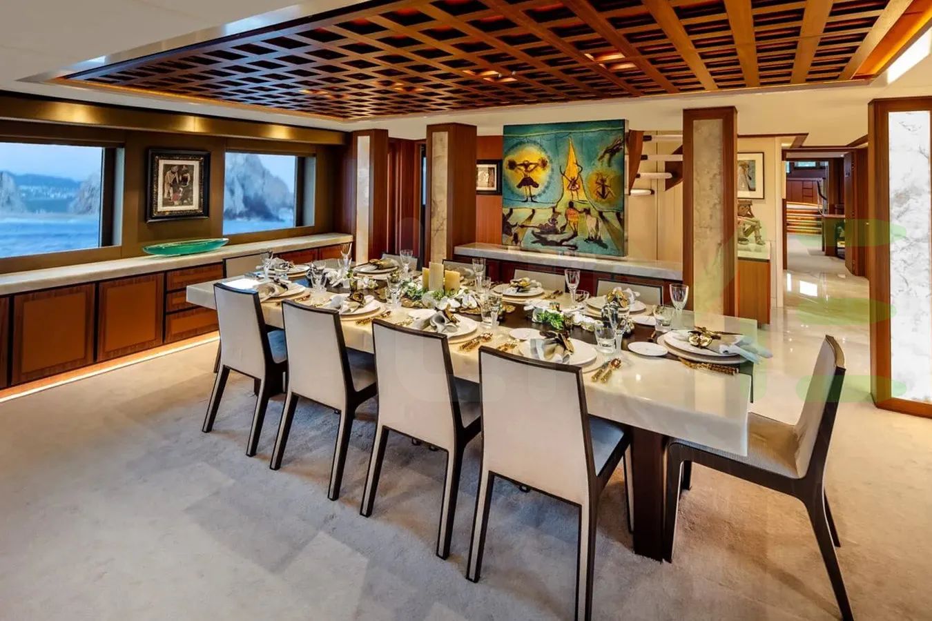 Her features include a gym, deck jacuzzi and air conditioning.