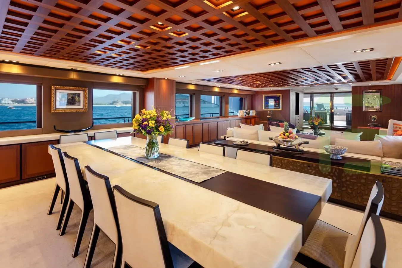 With a gross tonnage of 499, the CHAMPAGNE SEAS yacht for charter provides ample interior space for enjoyment. CHAMPAGNE SEAS offers accommodations for up to 12 guests in 6 lavishly appointed staterooms. She can also carry up to 8 crew onboard, including the Captain, to ensure a relaxed luxury yacht charter experience. The interior design by Espinosa Yacht Design exudes a sense of luxury, seamlessly blending comfort with style.
