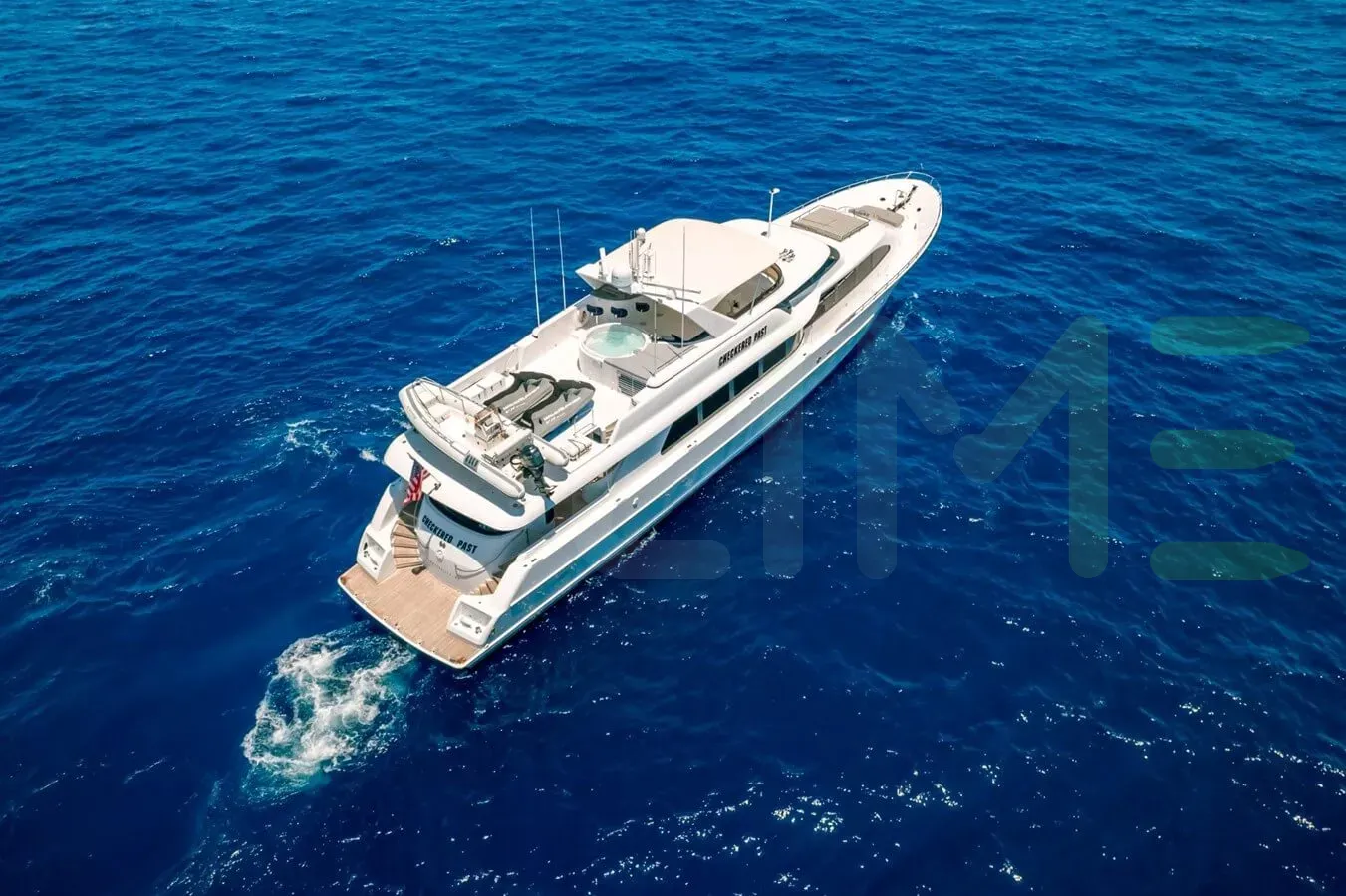 Indulge in the opulent comforts of spacious lounges, gourmet dining areas, and elegantly appointed staterooms. Savor the breathtaking views from the open decks, unwind on a sun lounge, or stay active in the water. For adventure enthusiasts, the CHECKERED PAST motoryacht is equipped with an array of water toys. Dive into the crystal-clear waters for a refreshing swim, explore hidden coves, or experience the thrill of wakeboarding. With attentive crew members catering to your every need, a yacht charter promises an unforgettable blend of relaxation, luxury, and adventure.