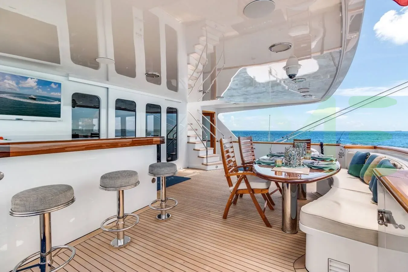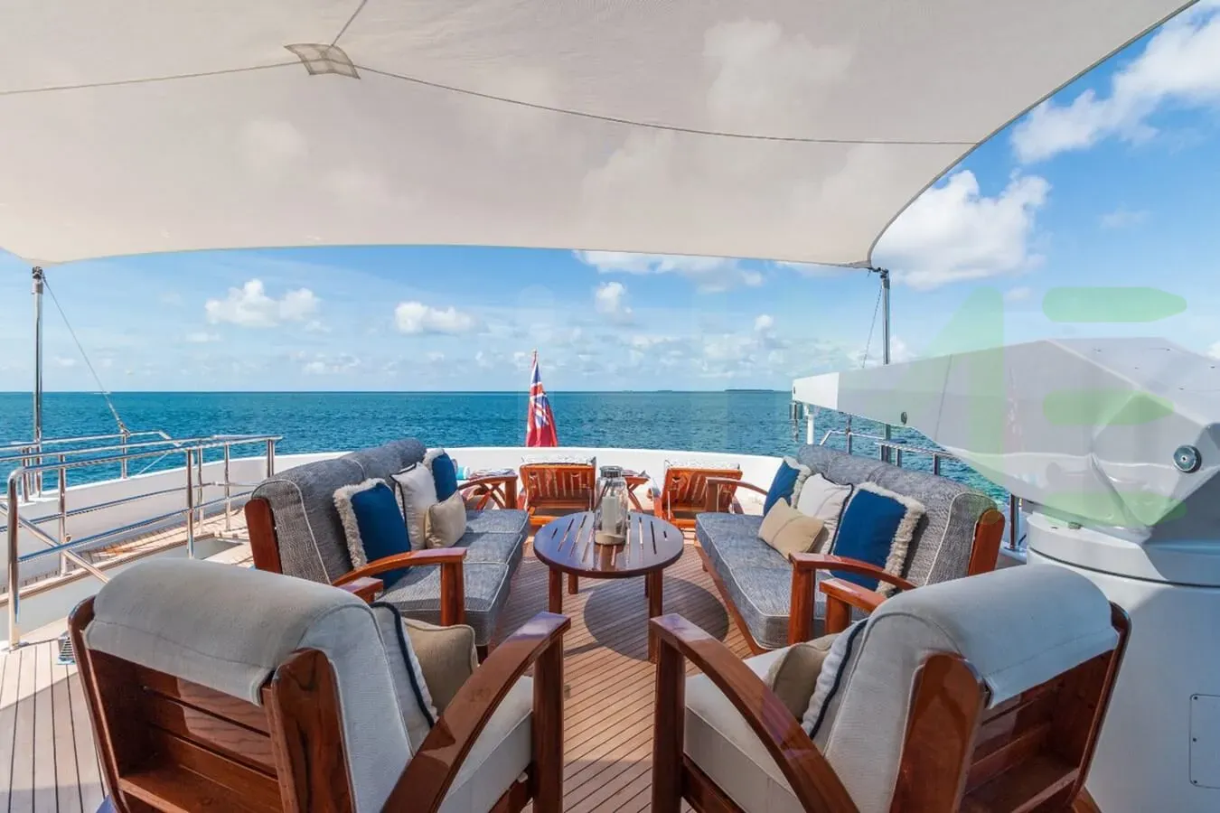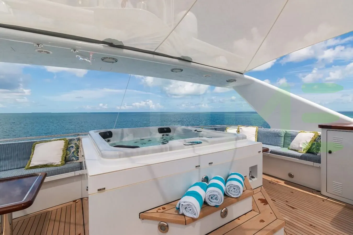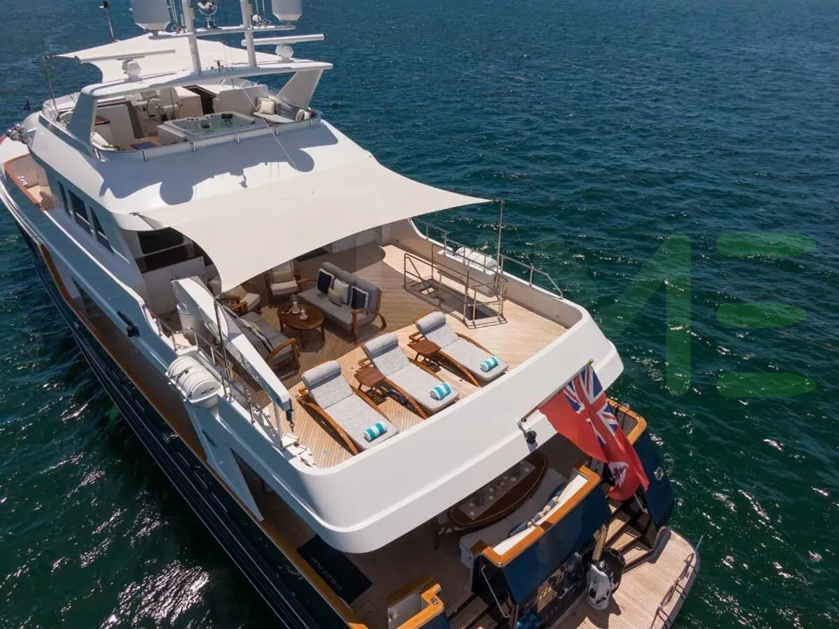 Her features include satellite communications, deck jacuzzi, WiFi and air conditioning.