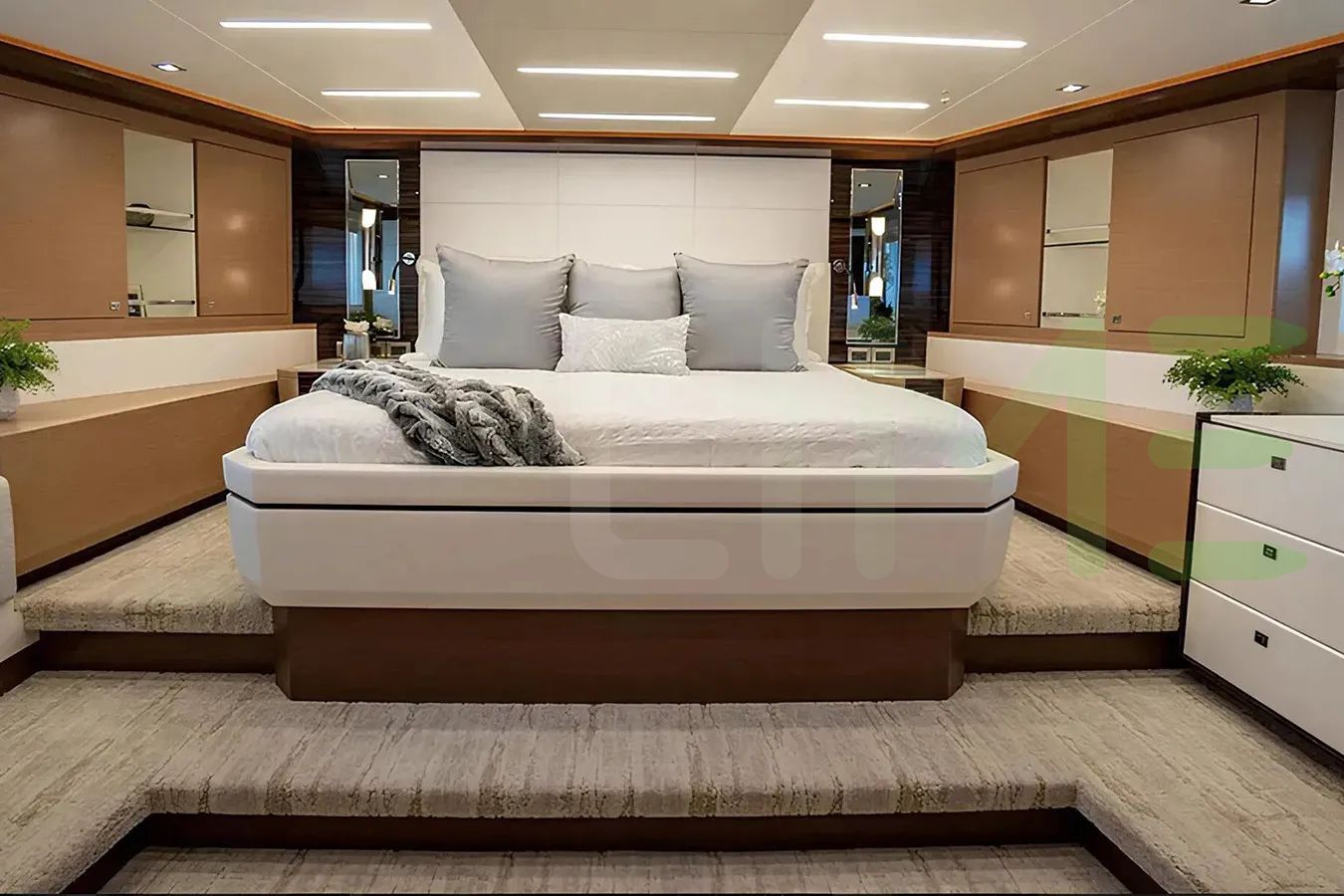With a gross tonnage of 189, the CHILLAXIN' yacht for charter provides ample interior space for enjoyment. CHILLAXIN' offers accommodations for up to 8 guests . She can also carry up to 4 crew onboard, including the Captain, to ensure a relaxed luxury yacht charter experience. The interior design by Evan K Marshall exudes a sense of luxury, seamlessly blending comfort with style.