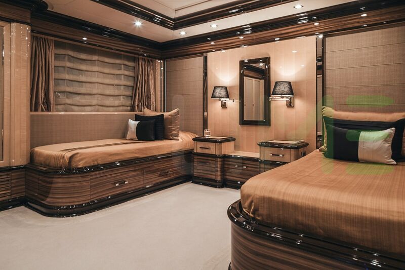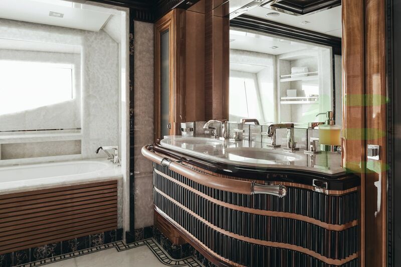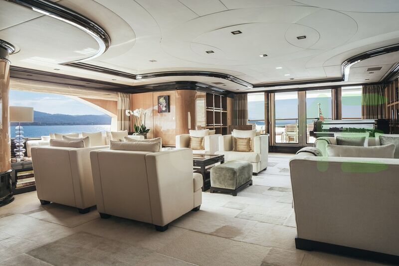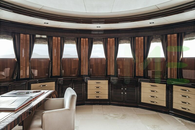 With a gross tonnage of 996, the CHRISTINA V yacht for charter provides ample interior space for enjoyment. CHRISTINA V offers accommodations for up to 14 guests in 6 lavishly appointed staterooms. She can also carry up to 15 crew onboard, including the Captain, to ensure a relaxed luxury yacht charter experience. The interior design by Massari Design S.r.l. exudes a sense of luxury, seamlessly blending comfort with style.