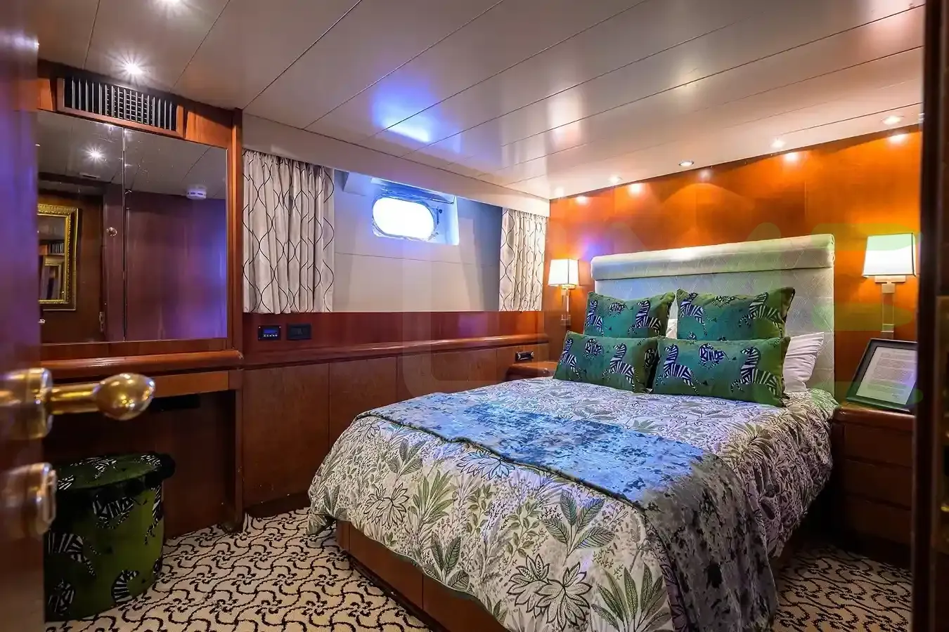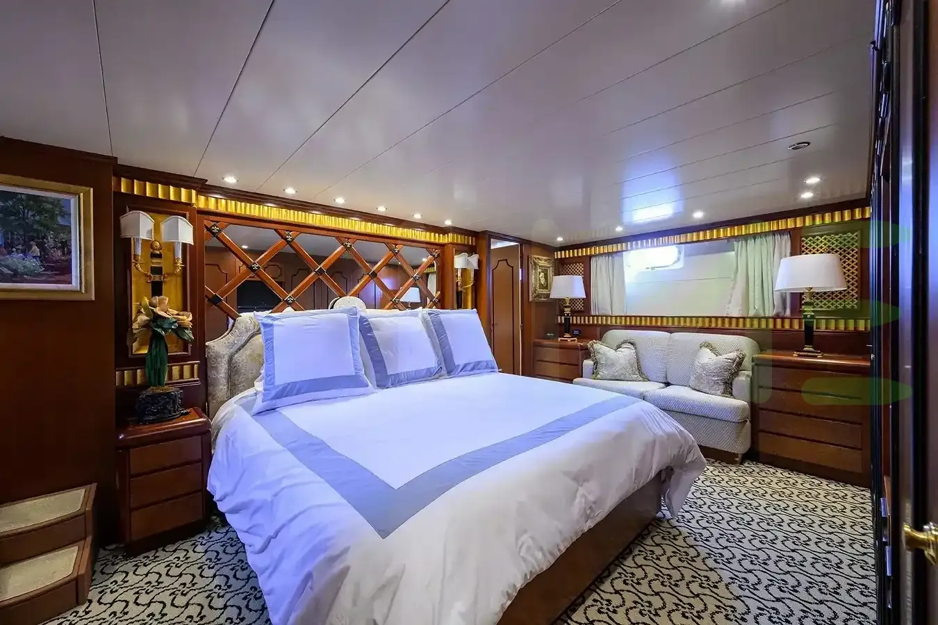 With a gross tonnage of 112, the CIPANGO yacht for charter provides ample interior space for enjoyment. CIPANGO offers accommodations for up to 8 guests in 4 lavishly appointed staterooms. She can also carry up to 4 crew onboard, including the Captain, to ensure a relaxed luxury yacht charter experience. The interior design by Patrick Knowles Designs exudes a sense of luxury, seamlessly blending comfort with style.