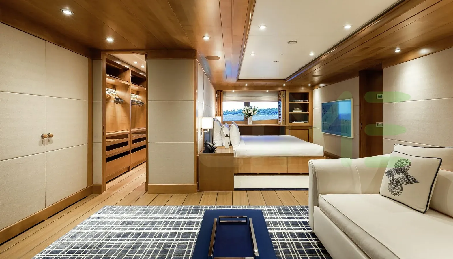 With a gross tonnage of 985, the CLELIA III yacht for charter provides ample interior space for enjoyment. CLELIA III offers accommodations for up to 12 guests in 7 lavishly appointed staterooms. She can also carry up to 14 crew onboard, including the Captain, to ensure a relaxed luxury yacht charter experience. The interior design by Studio Laura Sessa exudes a sense of luxury, seamlessly blending comfort with style.