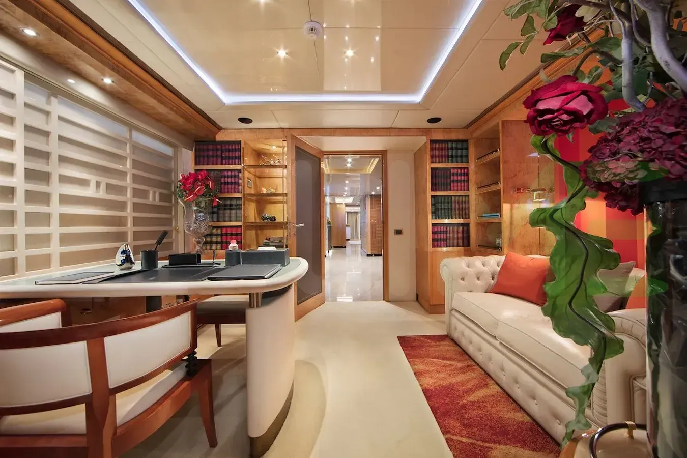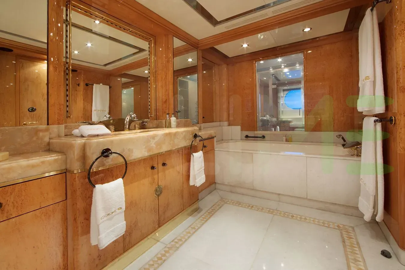 With a gross tonnage of 486, the CODE 8 yacht for charter provides ample interior space for enjoyment. CODE 8 offers accommodations for up to 12 guests in 6 lavishly appointed staterooms. She can also carry up to 10 crew onboard, including the Captain, to ensure a relaxed luxury yacht charter experience. The interior design by Zuretti Interior Design, Adriel Design, Inc. exudes a sense of luxury, seamlessly blending comfort with style.