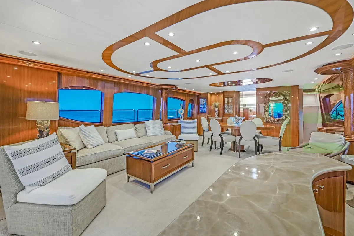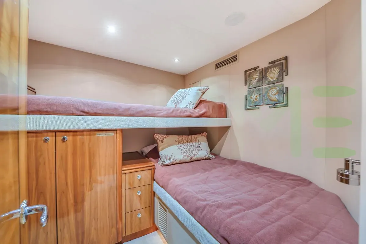With a gross tonnage of 127, the CONSUELO yacht for charter provides ample interior space for enjoyment. CONSUELO offers accommodations for up to 8 guests . She can also carry up to 4 crew onboard, including the Captain, to ensure a relaxed luxury yacht charter experience. The interior design by Hatteras Yachts exudes a sense of luxury, seamlessly blending comfort with style.