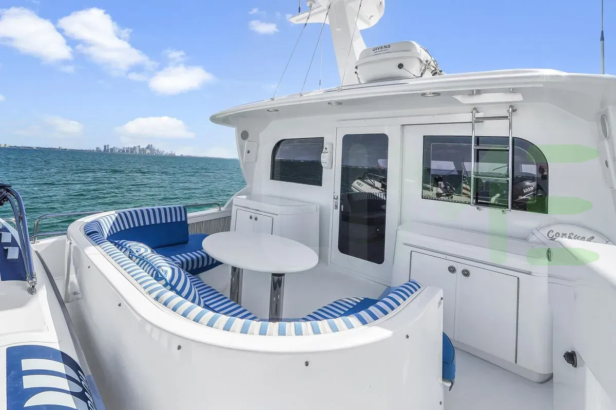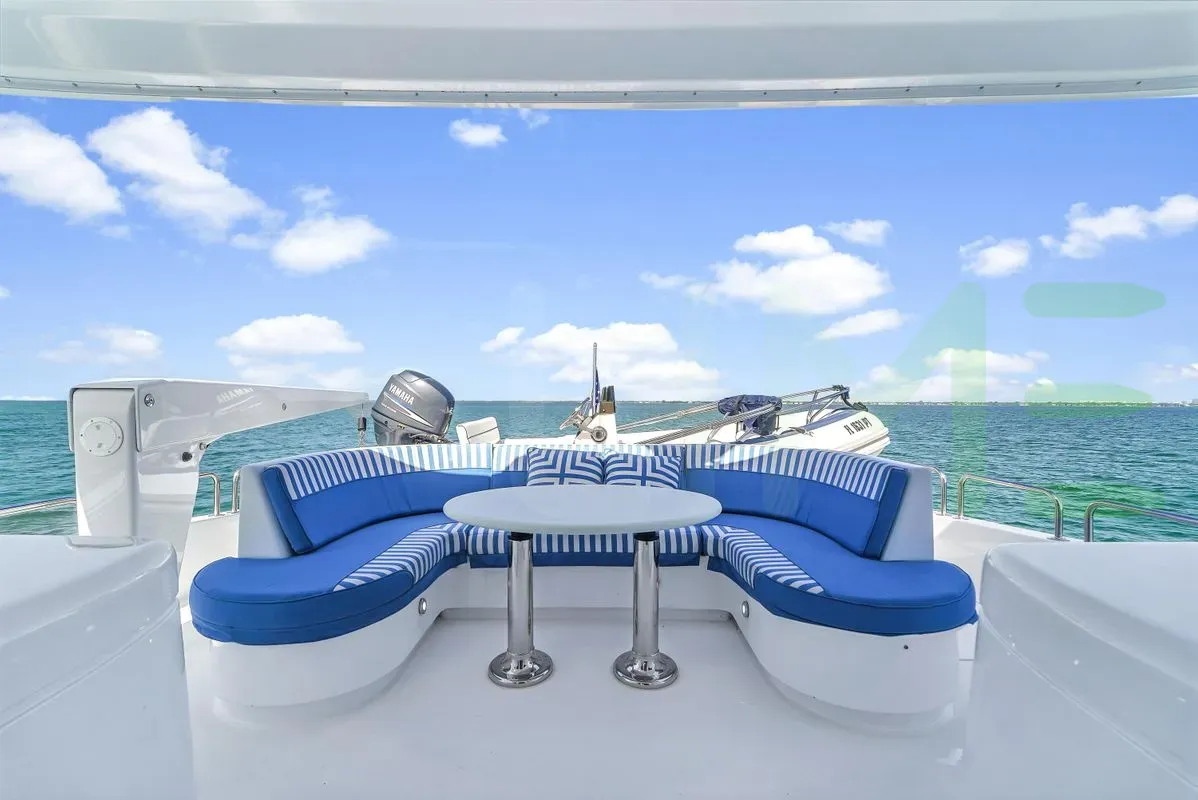 The exterior, designed by Hatteras Yachts, captures your attention with beautiful lines and impeccable craftsmanship. Whether you're lounging on the spacious decks or enjoying water sports in a secluded anchorage, the CONSUELO yacht for charter, built of GRP, offers a wealth of opportunities for relaxation and adventure.