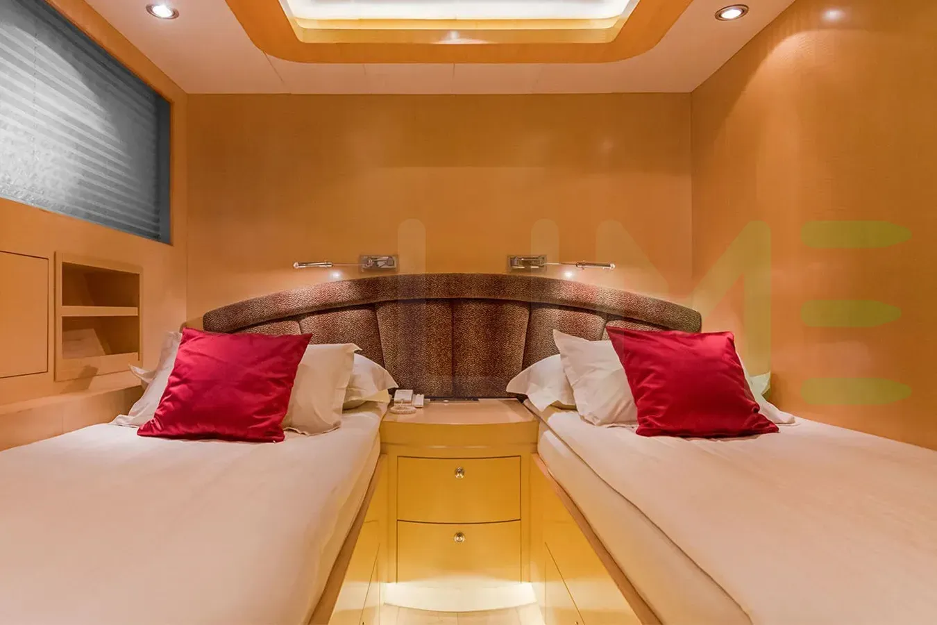 Indulge in the opulent comforts of spacious lounges, gourmet dining areas, and elegantly appointed staterooms. Savor the breathtaking views from the open decks, unwind on a sun lounge, or stay active in the water. For adventure enthusiasts, the CONTE ALBERTI motoryacht is equipped with an array of water toys. Dive into the crystal-clear waters for a refreshing swim, explore hidden coves, or experience the thrill of wakeboarding. With attentive crew members catering to your every need, a yacht charter promises an unforgettable blend of relaxation, luxury, and adventure.