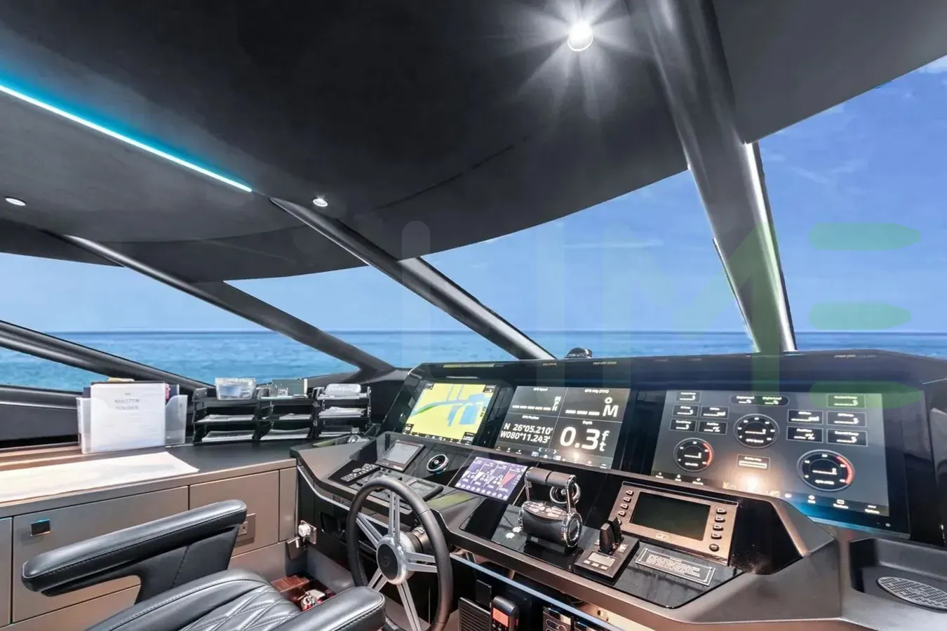 Built by Sunseeker in United Kingdom, this stunning yacht boasts a length of 98' 3" (29.94m), a beam of 23' (7m), and a draft of 6' 11" (2.1m).