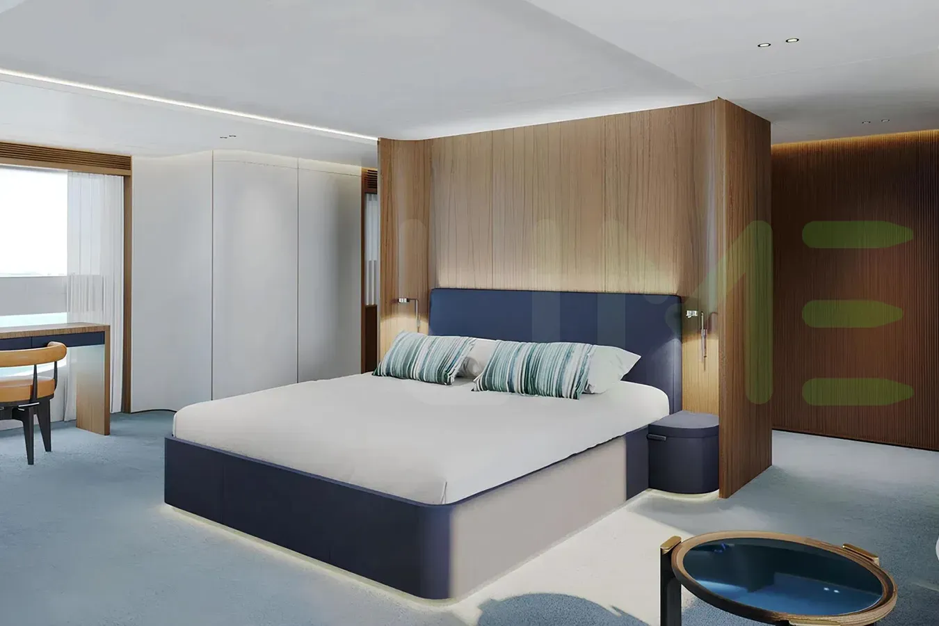 With a gross tonnage of 386, the COSMICO yacht for charter provides ample interior space for enjoyment. COSMICO offers accommodations for up to 10 guests . She can also carry up to 10 crew onboard, including the Captain, to ensure a relaxed luxury yacht charter experience. The interior design by Bonetti / Kozerski architecture DPC exudes a sense of luxury, seamlessly blending comfort with style.