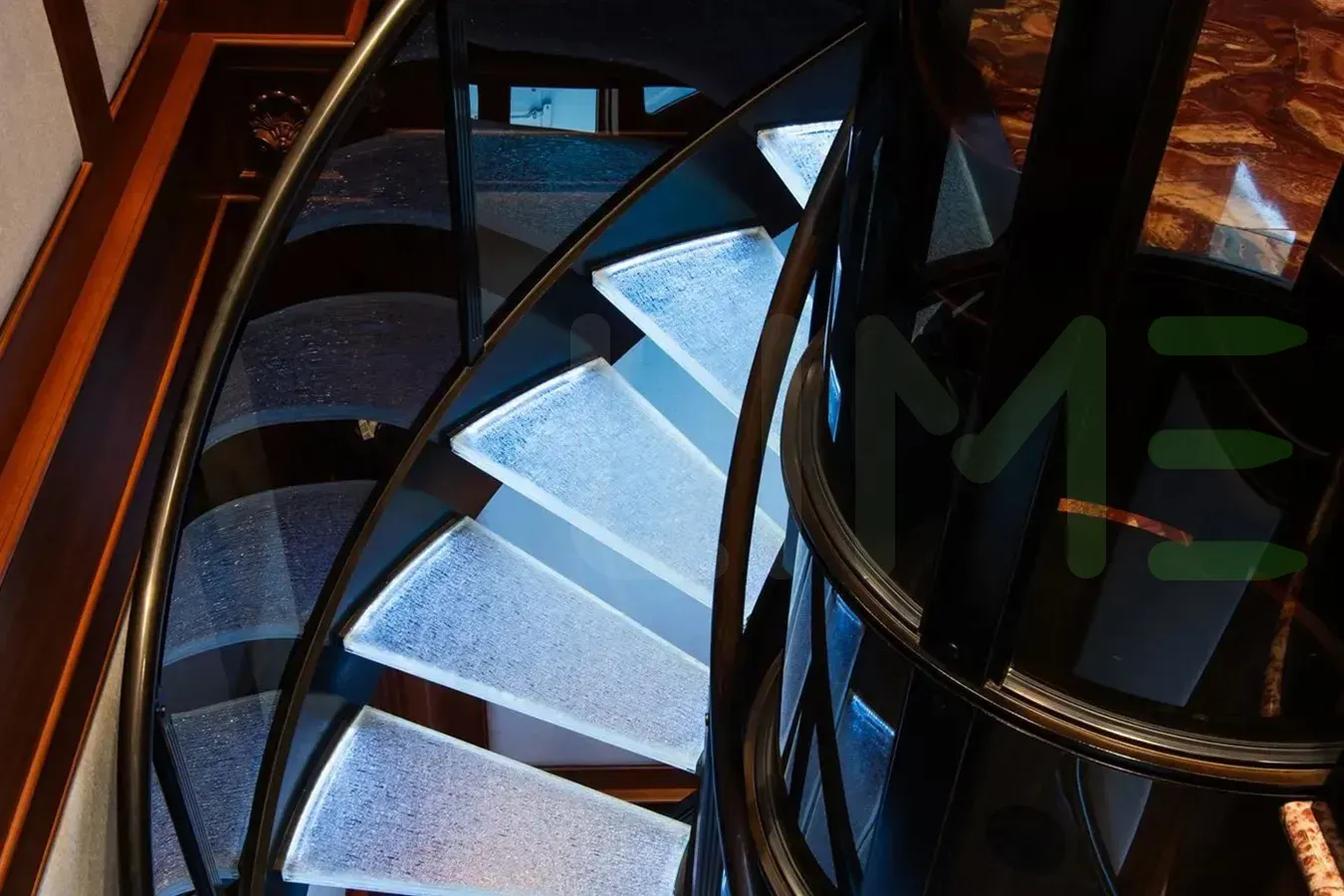 - Large glass-tube elevator
