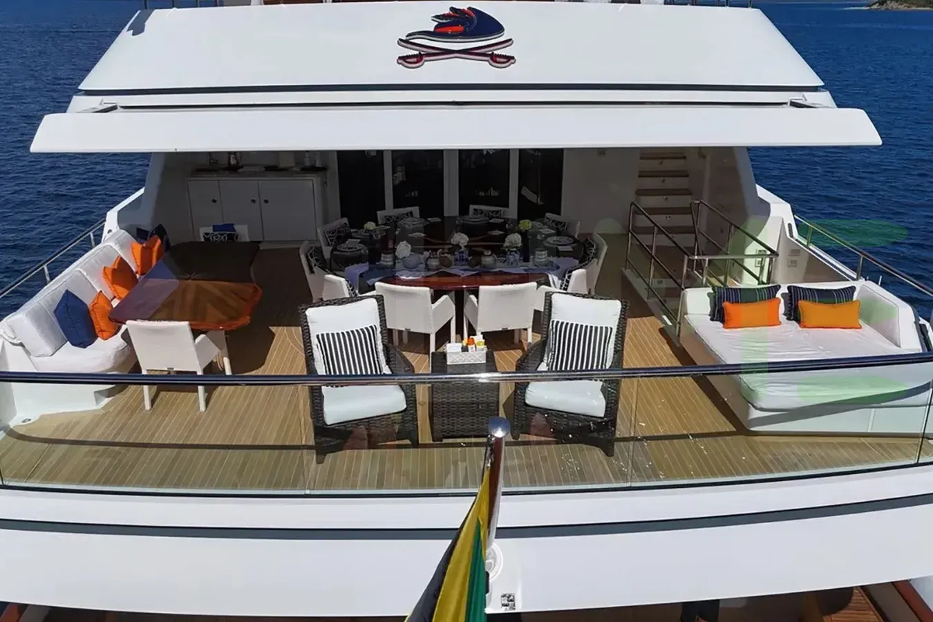 Indulge in the opulent comforts of spacious lounges, gourmet dining areas, and elegantly appointed staterooms. Savor the breathtaking views from the open decks, unwind on a sun lounge, or stay active in the water. For adventure enthusiasts, the CROSSED SABRE motoryacht is equipped with an array of water toys. Dive into the crystal-clear waters for a refreshing swim, explore hidden coves, or experience the thrill of wakeboarding. With attentive crew members catering to your every need, a yacht charter promises an unforgettable blend of relaxation, luxury, and adventure.