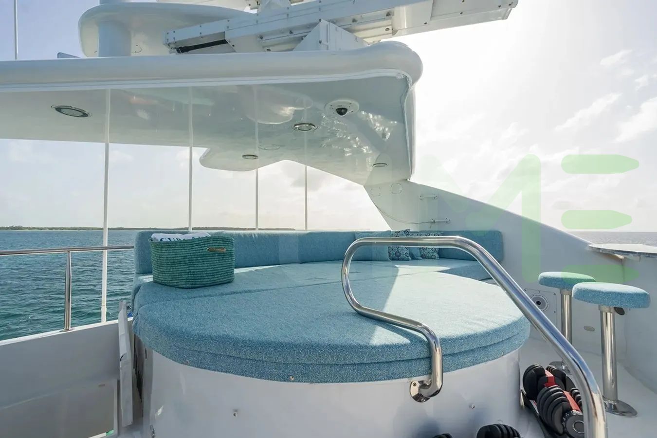 On your charter, you'll find plenty to keep you busy and entertained such as a gym with all the latest equipment to maintain your fitness routine. Soak up the bubbles in style in the deck jacuzzi.