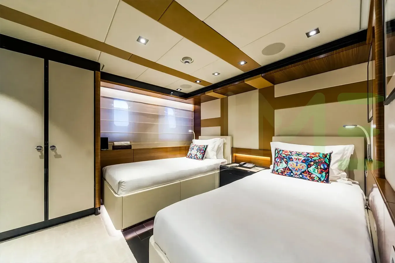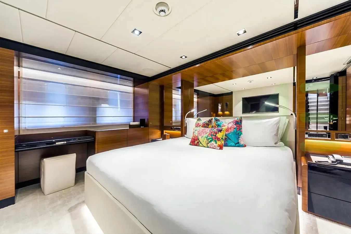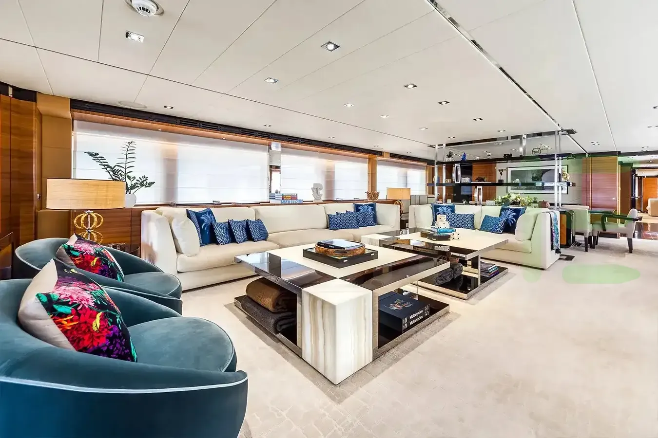 With a gross tonnage of 499, the DAISY D yacht for charter provides ample interior space for enjoyment. DAISY D offers accommodations for up to 12 guests in 6 lavishly appointed staterooms. She can also carry up to 9 crew onboard, including the Captain, to ensure a relaxed luxury yacht charter experience. The interior design by Cristiano Gatto Design exudes a sense of luxury, seamlessly blending comfort with style.