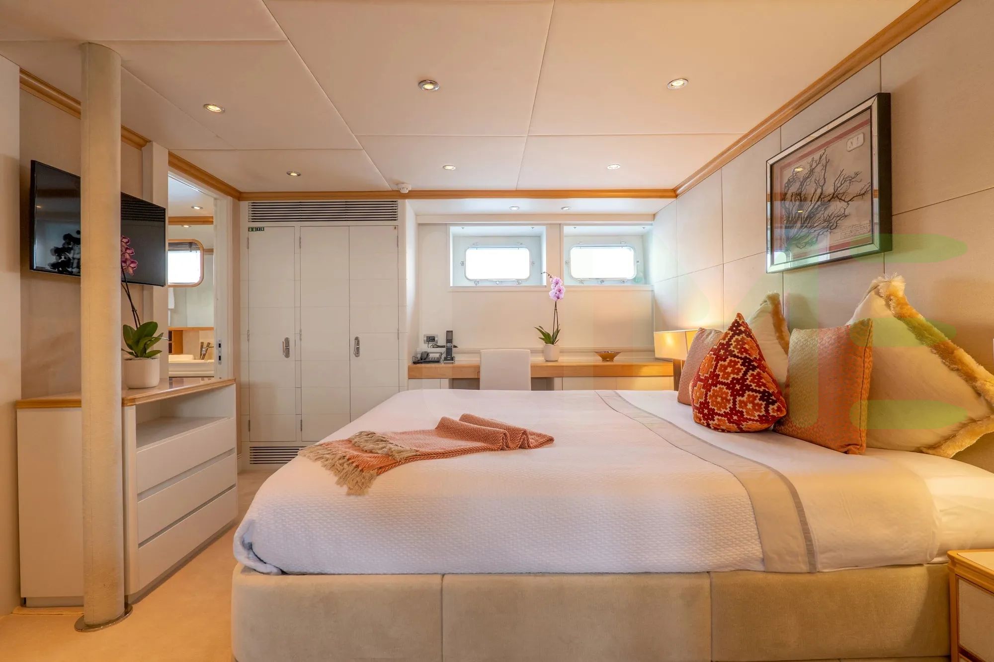 With a gross tonnage of 440, the DEEP BLUE II yacht for charter provides ample interior space for enjoyment. DEEP BLUE II offers accommodations for up to 10 guests in 5 lavishly appointed staterooms. She can also carry up to 10 crew onboard, including the Captain, to ensure a relaxed luxury yacht charter experience. The interior design by Donald Starkey Designs, Paolo Rossi Architetto exudes a sense of luxury, seamlessly blending comfort with style.