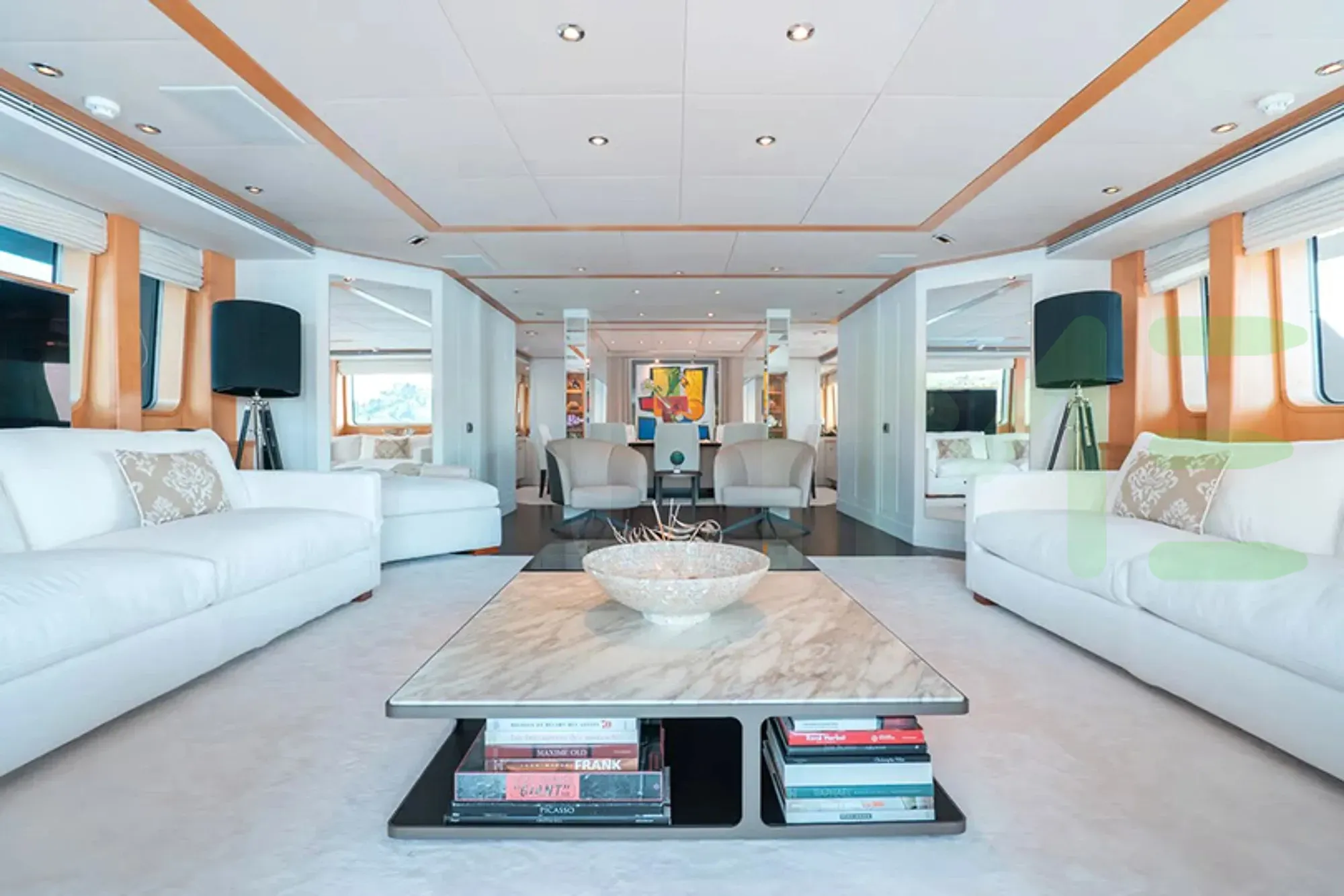 With a gross tonnage of 440, the DEEP BLUE II yacht for charter provides ample interior space for enjoyment. DEEP BLUE II offers accommodations for up to 10 guests in 5 lavishly appointed staterooms. She can also carry up to 10 crew onboard, including the Captain, to ensure a relaxed luxury yacht charter experience. The interior design by Donald Starkey Designs, Paolo Rossi Architetto exudes a sense of luxury, seamlessly blending comfort with style.