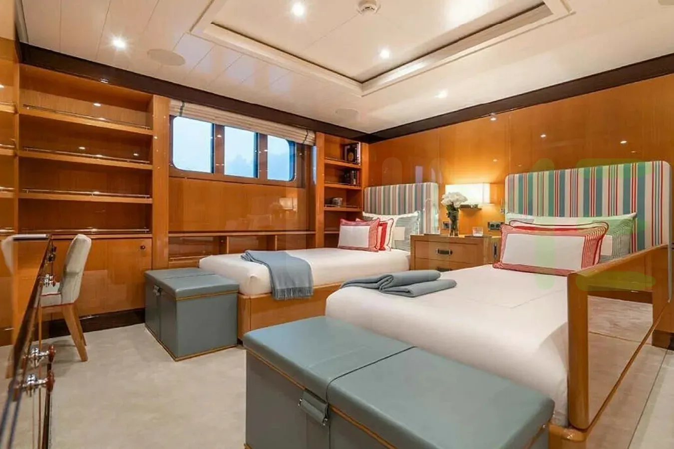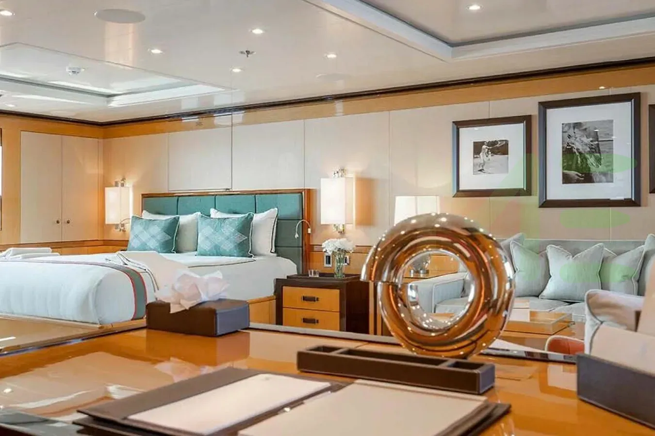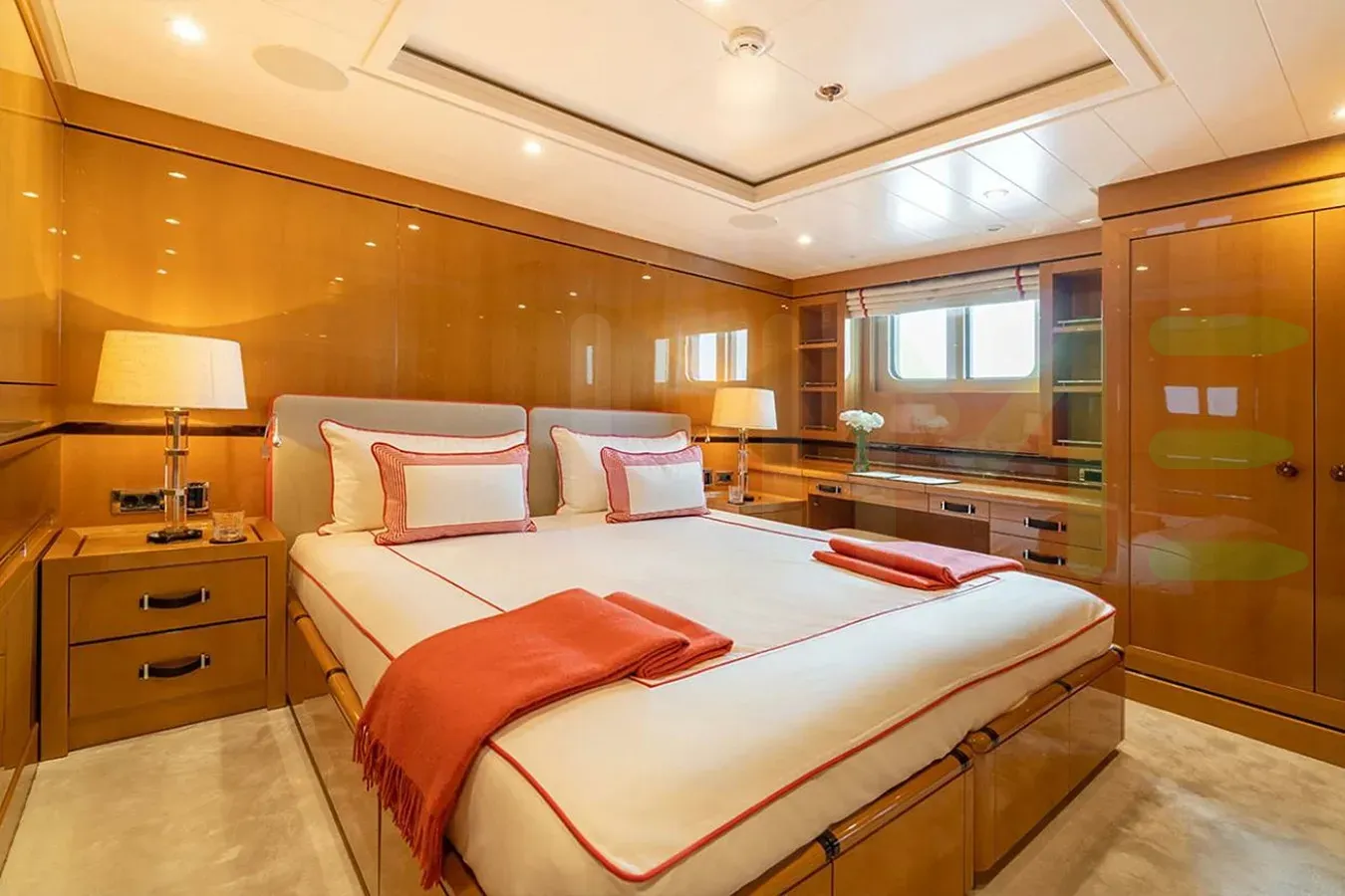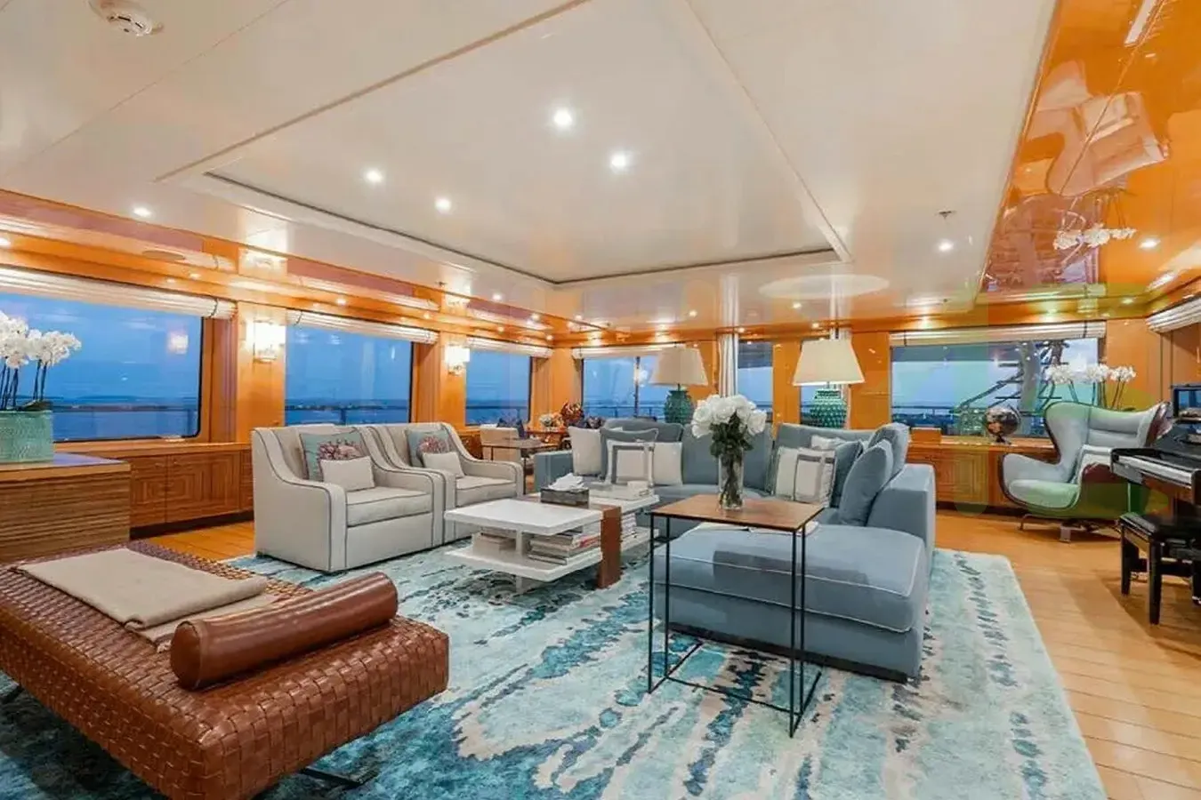 With a gross tonnage of 670, the DEEP BLUE yacht for charter provides ample interior space for enjoyment. DEEP BLUE offers accommodations for up to 12 guests in 6 lavishly appointed staterooms. She can also carry up to 13 crew onboard, including the Captain, to ensure a relaxed luxury yacht charter experience. The interior design by Studio Laura Sessa exudes a sense of luxury, seamlessly blending comfort with style.