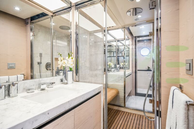 With a gross tonnage of 102, the DEEP BLUE yacht for charter provides ample interior space for enjoyment. DEEP BLUE offers accommodations for up to 8 guests . She can also carry up to 2 crew onboard, including the Captain, to ensure a relaxed luxury yacht charter experience. The interior design by Salvagni Architetti exudes a sense of luxury, seamlessly blending comfort with style.