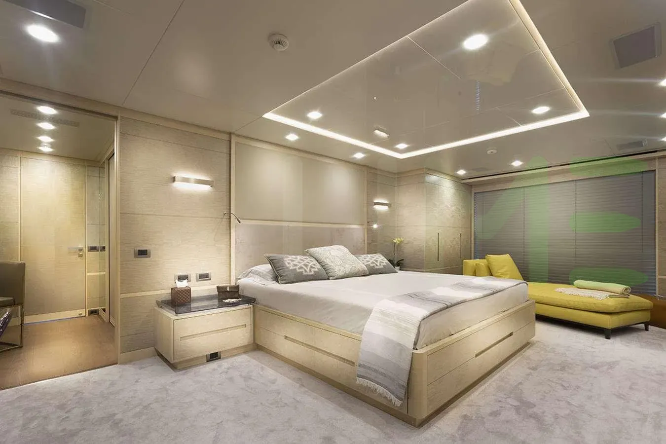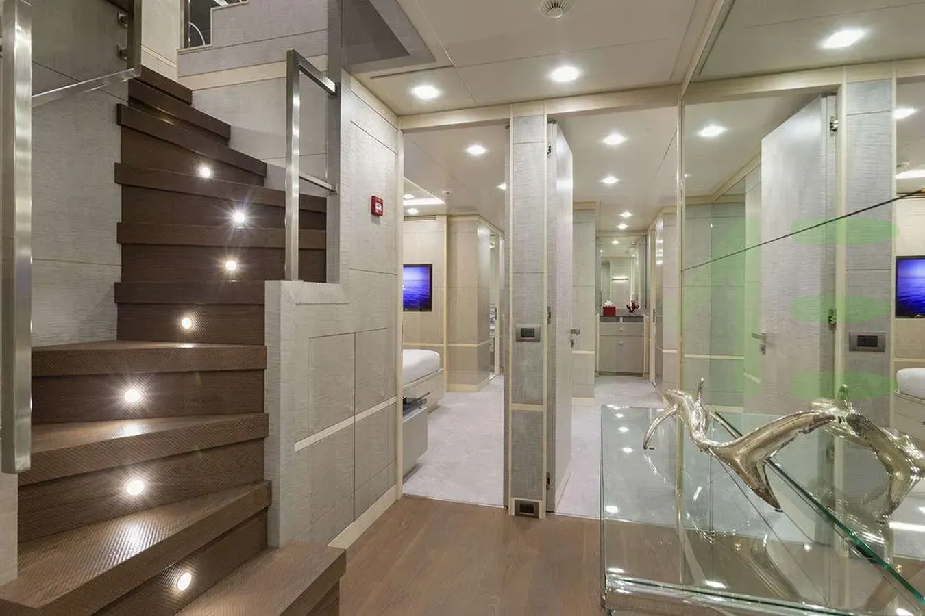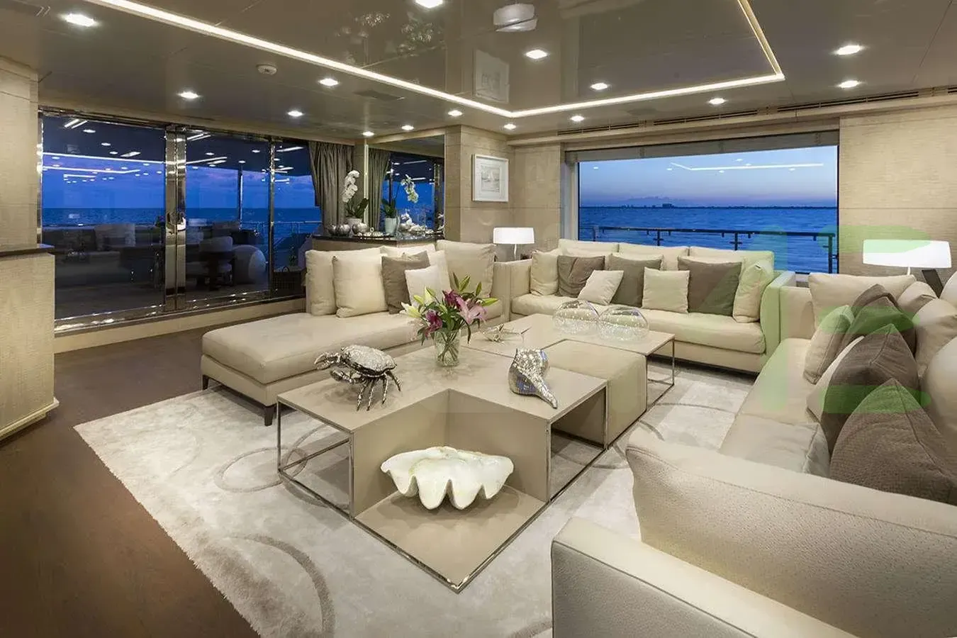 Her features include beauty salon, underwater lights, beach club and air conditioning.