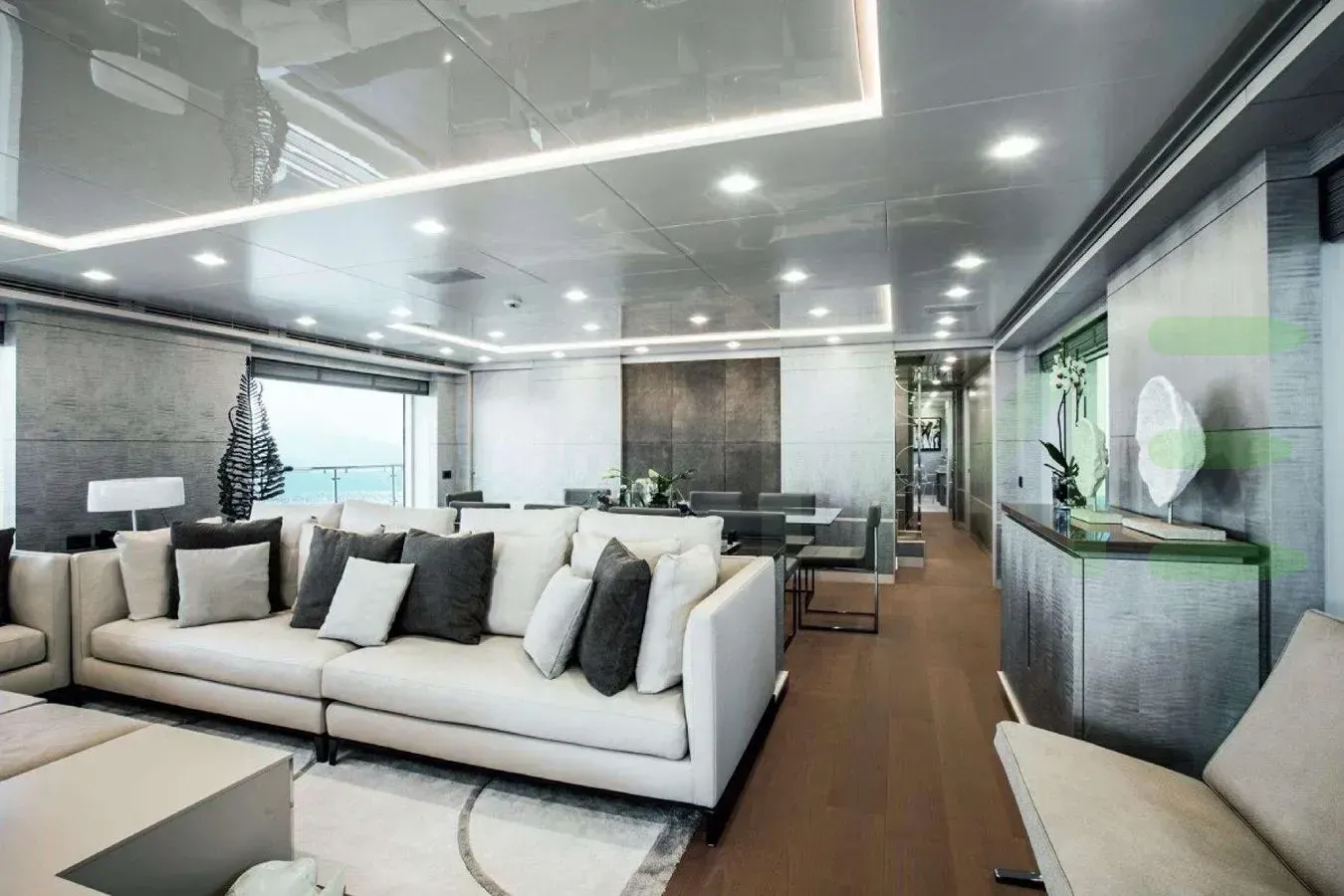 With a gross tonnage of 320, the DELIBERATELY LUCKY yacht for charter provides ample interior space for enjoyment. DELIBERATELY LUCKY offers accommodations for up to 10 guests in 5 lavishly appointed staterooms. She can also carry up to 8 crew onboard, including the Captain, to ensure a relaxed luxury yacht charter experience. The interior design by RWD exudes a sense of luxury, seamlessly blending comfort with style.