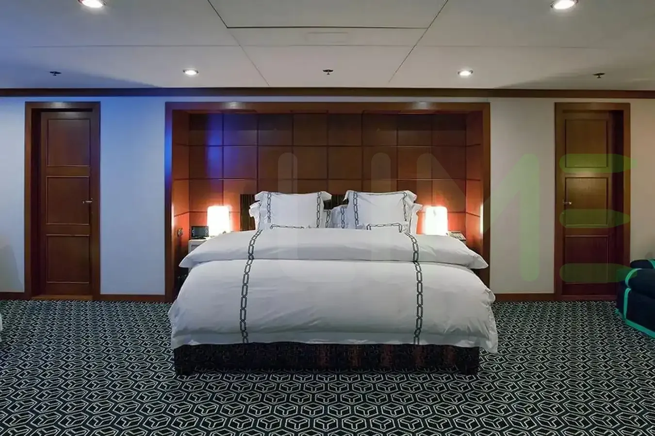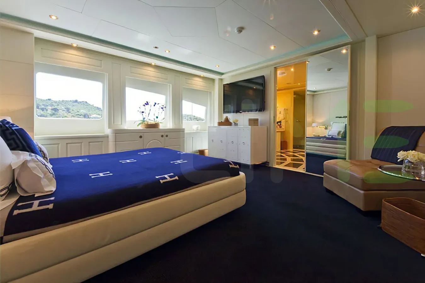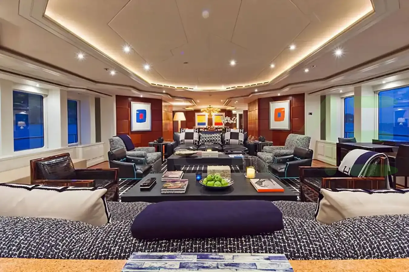 With a gross tonnage of 1,049, the DIAMOND yacht for charter provides ample interior space for enjoyment. DIAMOND offers accommodations for up to 18 guests in 9 lavishly appointed staterooms. She can also carry up to 15 crew onboard, including the Captain, to ensure a relaxed luxury yacht charter experience. The interior design by Donald Starkey Designs exudes a sense of luxury, seamlessly blending comfort with style.
