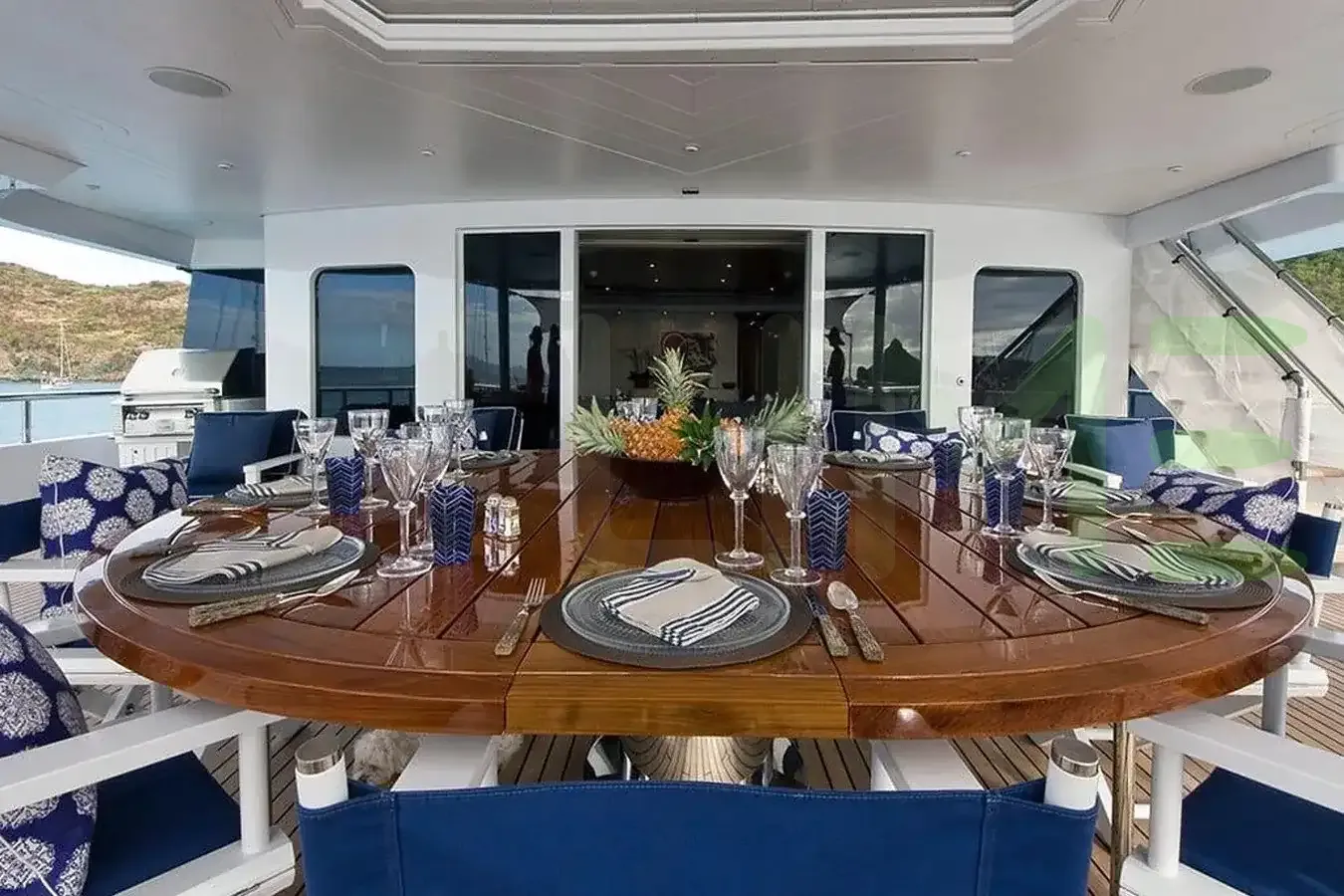 The exterior, designed by Donald Starkey Designs, captures your attention with beautiful lines and impeccable craftsmanship. Whether you're lounging on the spacious decks or enjoying water sports in a secluded anchorage, the DIAMOND yacht for charter, built of Steel and Aluminium, offers a wealth of opportunities for relaxation and adventure.