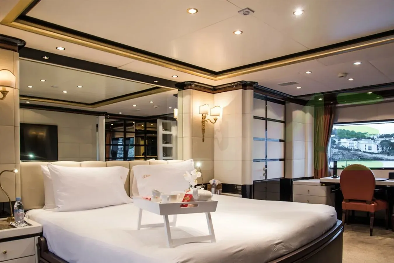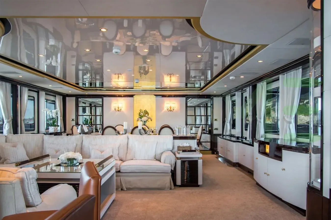 With a gross tonnage of 483, the DIANE yacht for charter provides ample interior space for enjoyment. DIANE offers accommodations for up to 11 guests in 5 lavishly appointed staterooms. She can also carry up to 8 crew onboard, including the Captain, to ensure a relaxed luxury yacht charter experience. The interior design by Zuretti Interior Design exudes a sense of luxury, seamlessly blending comfort with style.