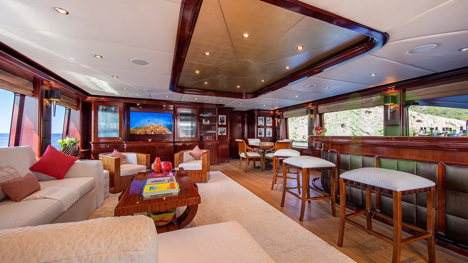 With a gross tonnage of 474, the DIRT POOR yacht for charter provides ample interior space for enjoyment. DIRT POOR offers accommodations for up to 12 guests in 5 lavishly appointed staterooms. She can also carry up to 9 crew onboard, including the Captain, to ensure a relaxed luxury yacht charter experience. The interior design by Sylvie Charest exudes a sense of luxury, seamlessly blending comfort with style.