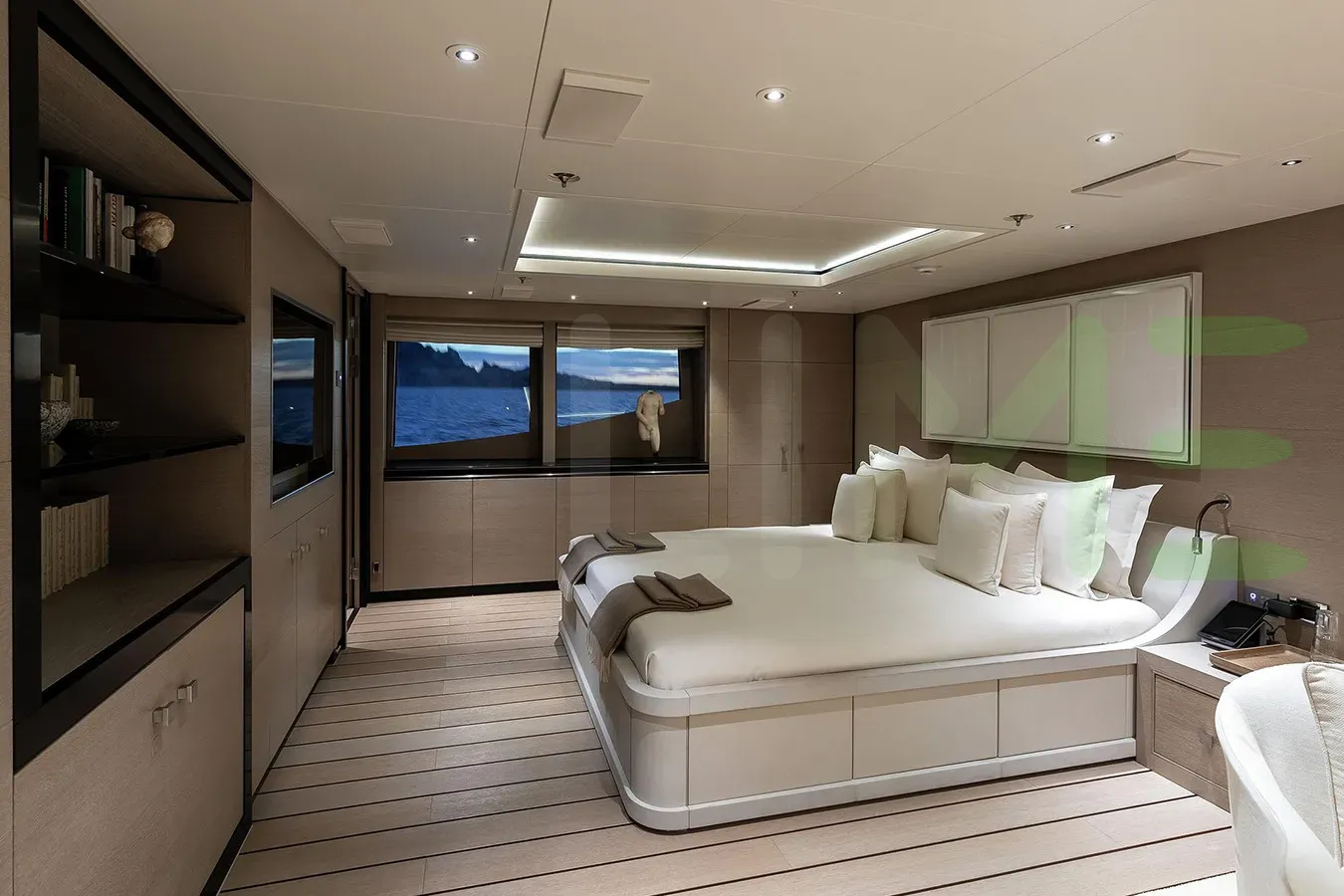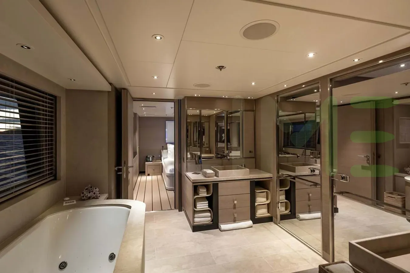 With a gross tonnage of 656, the DOJO yacht for charter provides ample interior space for enjoyment. DOJO offers accommodations for up to 12 guests . She can also carry up to 12 crew onboard, including the Captain, to ensure a relaxed luxury yacht charter experience. The interior design by Nuvolari Lenard, Axel Vervoordt exudes a sense of luxury, seamlessly blending comfort with style.