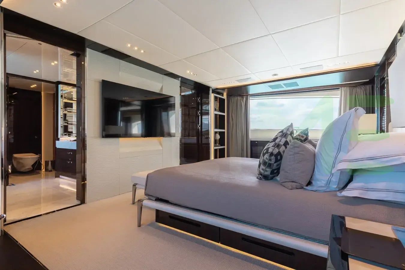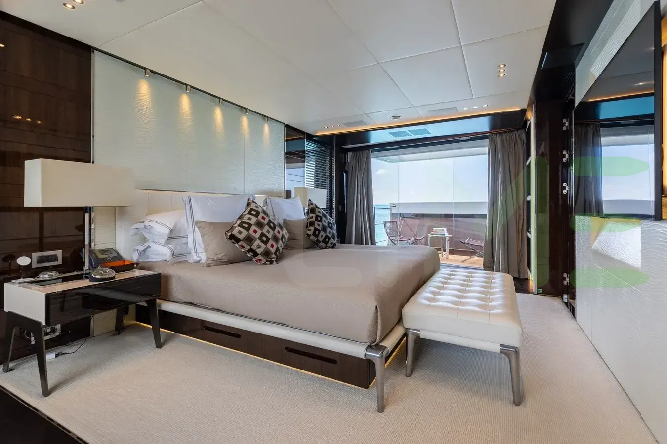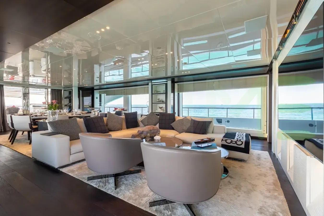 With a gross tonnage of 498, the DOMANI yacht for charter provides ample interior space for enjoyment. DOMANI offers accommodations for up to 12 guests in 6 lavishly appointed staterooms. She can also carry up to 8 crew onboard, including the Captain, to ensure a relaxed luxury yacht charter experience. The interior design by Galeazzi Design exudes a sense of luxury, seamlessly blending comfort with style.
