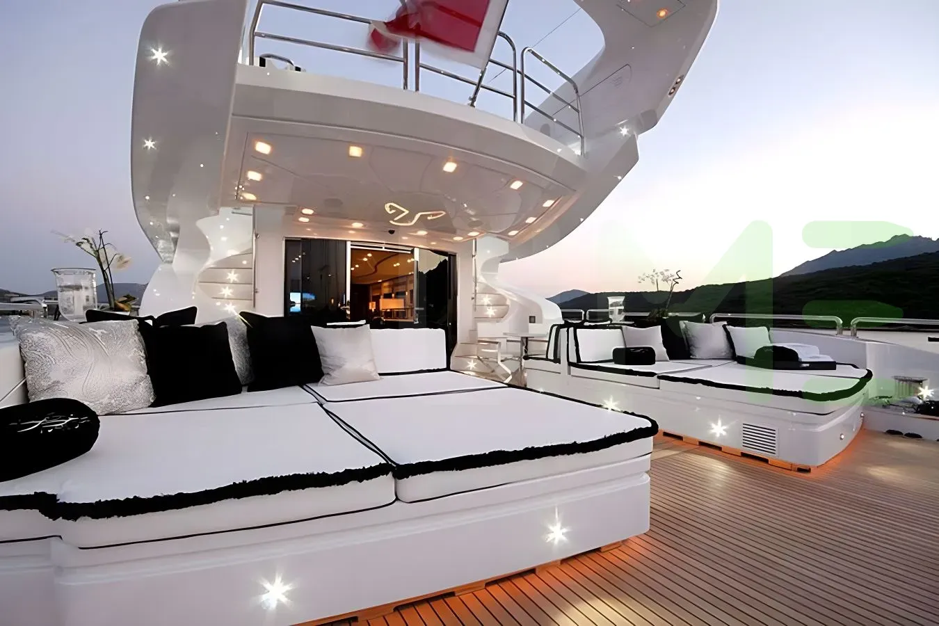 Indulge in the opulent comforts of spacious lounges, gourmet dining areas, and elegantly appointed staterooms. Savor the breathtaking views from the open decks, unwind on a sun lounge, or stay active in the water. For adventure enthusiasts, the D'ONE D motoryacht is equipped with an array of water toys. Dive into the crystal-clear waters for a refreshing swim, explore hidden coves, or experience the thrill of wakeboarding. With attentive crew members catering to your every need, a yacht charter promises an unforgettable blend of relaxation, luxury, and adventure.