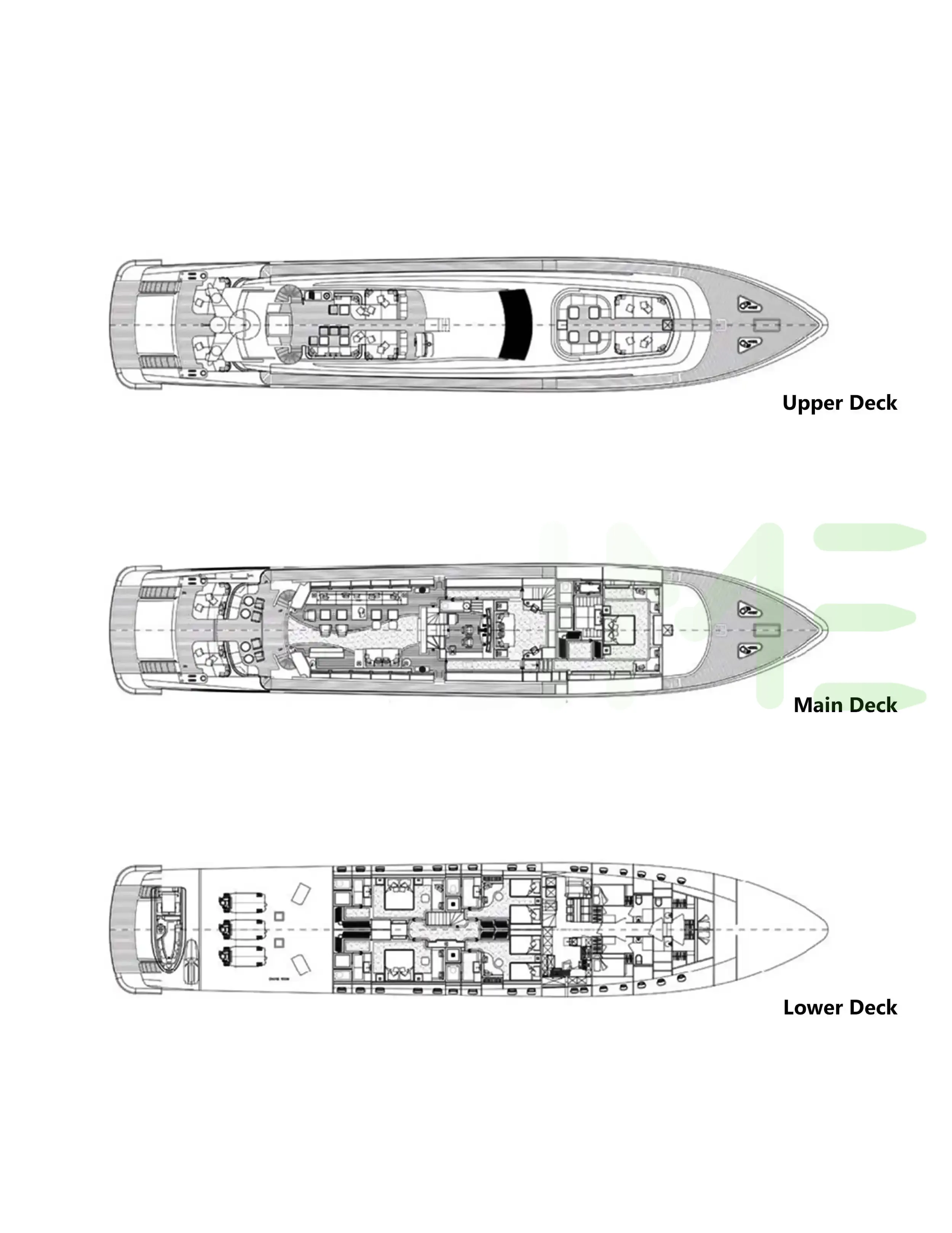 Request plans that include the layout of staterooms, guest areas, and outdoor spaces, as well as crew quarters and work areas.