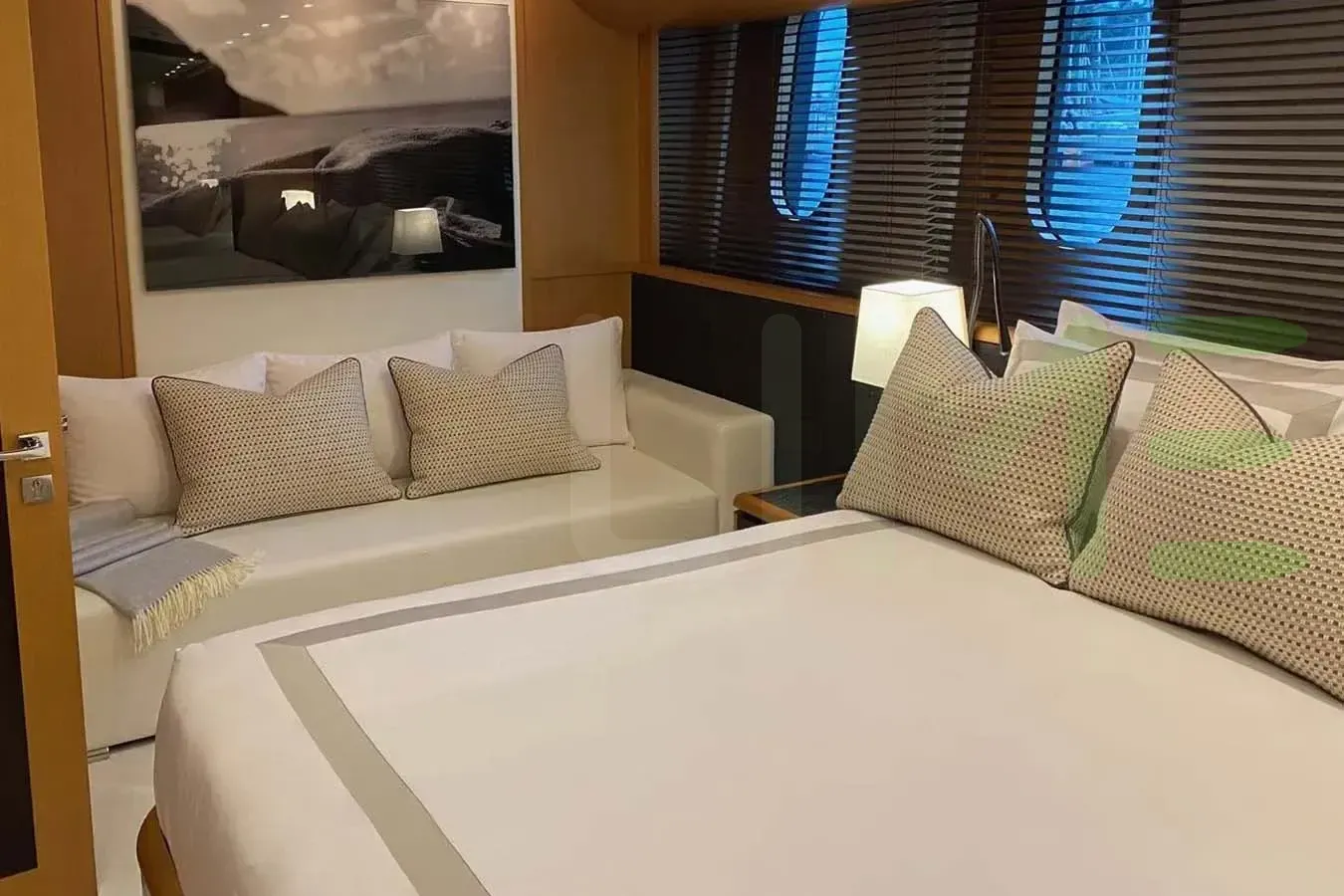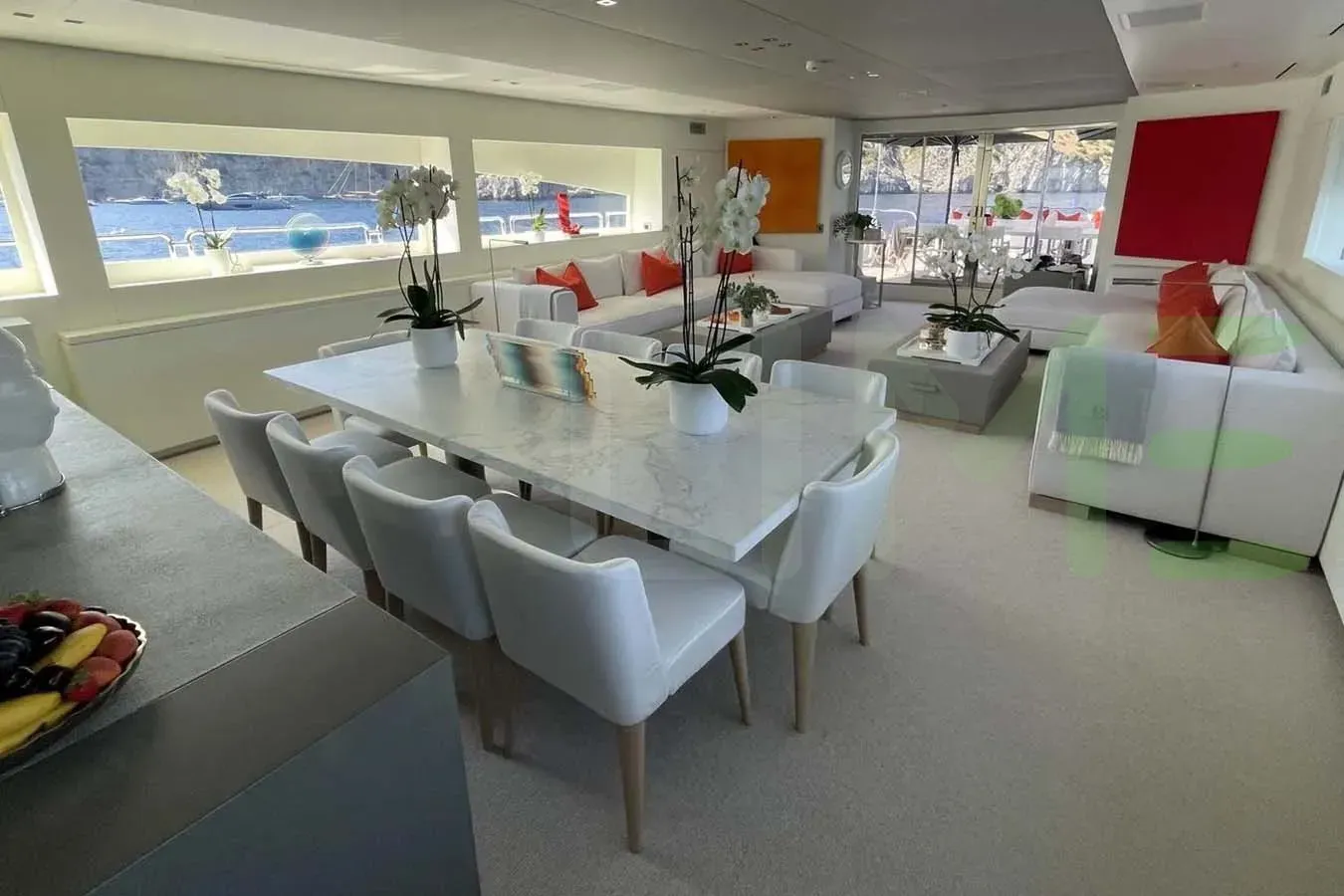 With a gross tonnage of 422, the D'ONE D yacht for charter provides ample interior space for enjoyment. D'ONE D offers accommodations for up to 12 guests in 5 lavishly appointed staterooms. She can also carry up to 8 crew onboard, including the Captain, to ensure a relaxed luxury yacht charter experience. The interior design by Cristiano Gatto Design, Casa Dio exudes a sense of luxury, seamlessly blending comfort with style.