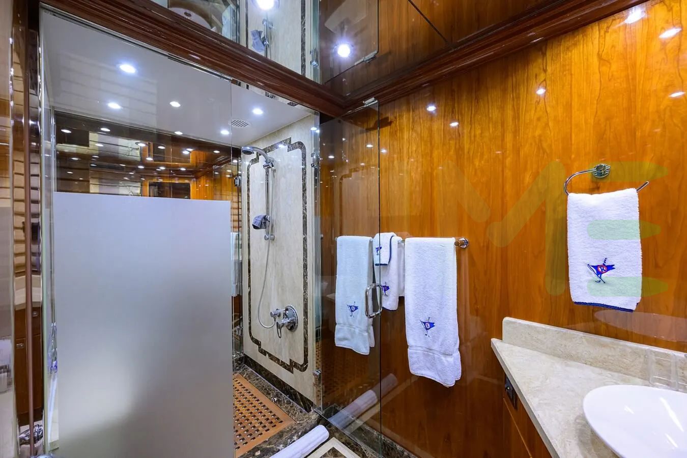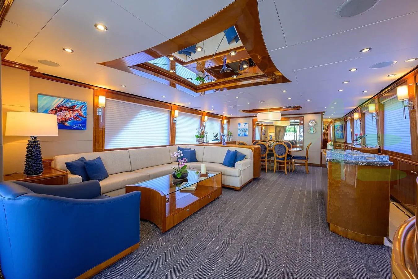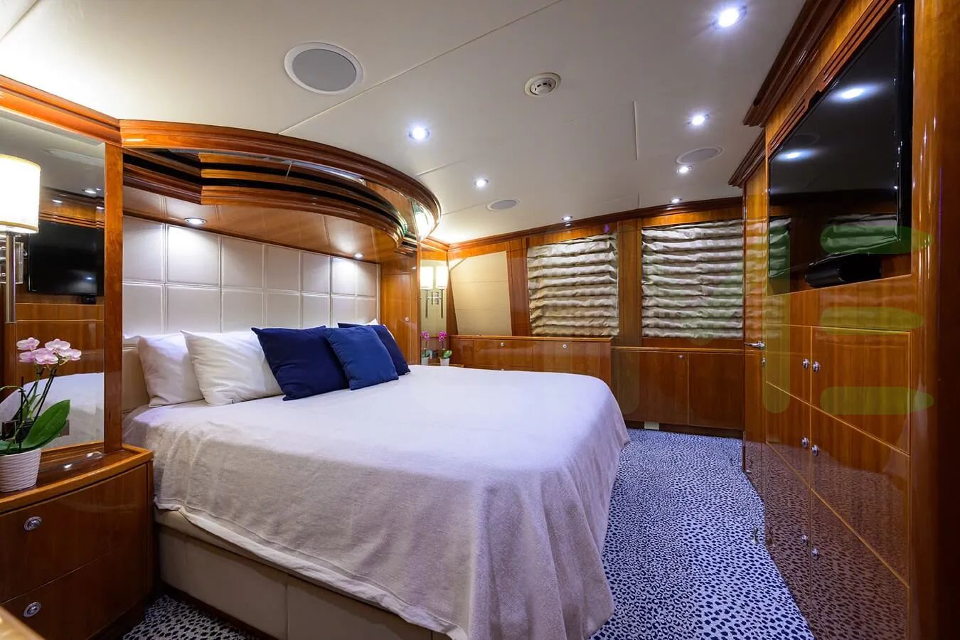 With a gross tonnage of 173, the DONE DEAL yacht for charter provides ample interior space for enjoyment. DONE DEAL offers accommodations for up to 10 guests in 4 lavishly appointed staterooms. She can also carry up to 4 crew onboard, including the Captain, to ensure a relaxed luxury yacht charter experience. The interior design by Yacht Interiors by Shelley exudes a sense of luxury, seamlessly blending comfort with style.