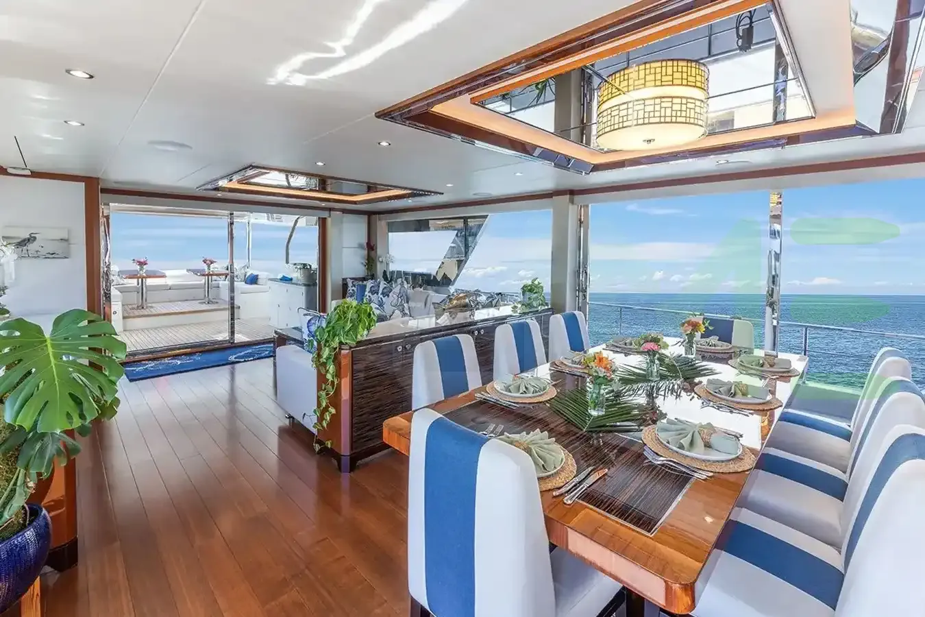 With a gross tonnage of 190, the DRINKABILITY yacht for charter provides ample interior space for enjoyment. DRINKABILITY offers accommodations for up to 8 guests in 5 lavishly appointed staterooms. She can also carry up to 6 crew onboard, including the Captain, to ensure a relaxed luxury yacht charter experience. The interior design by Evan K Marshall exudes a sense of luxury, seamlessly blending comfort with style.