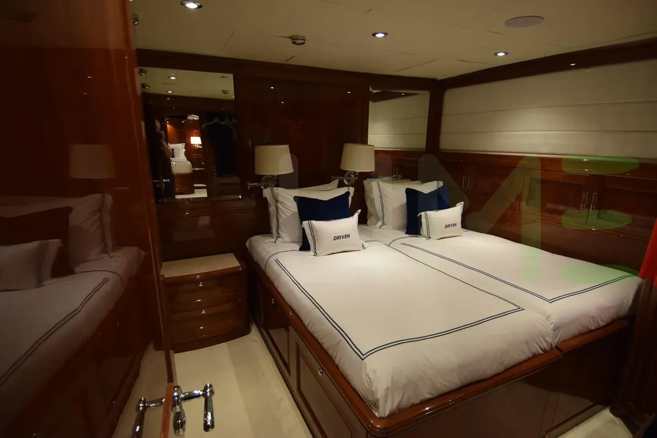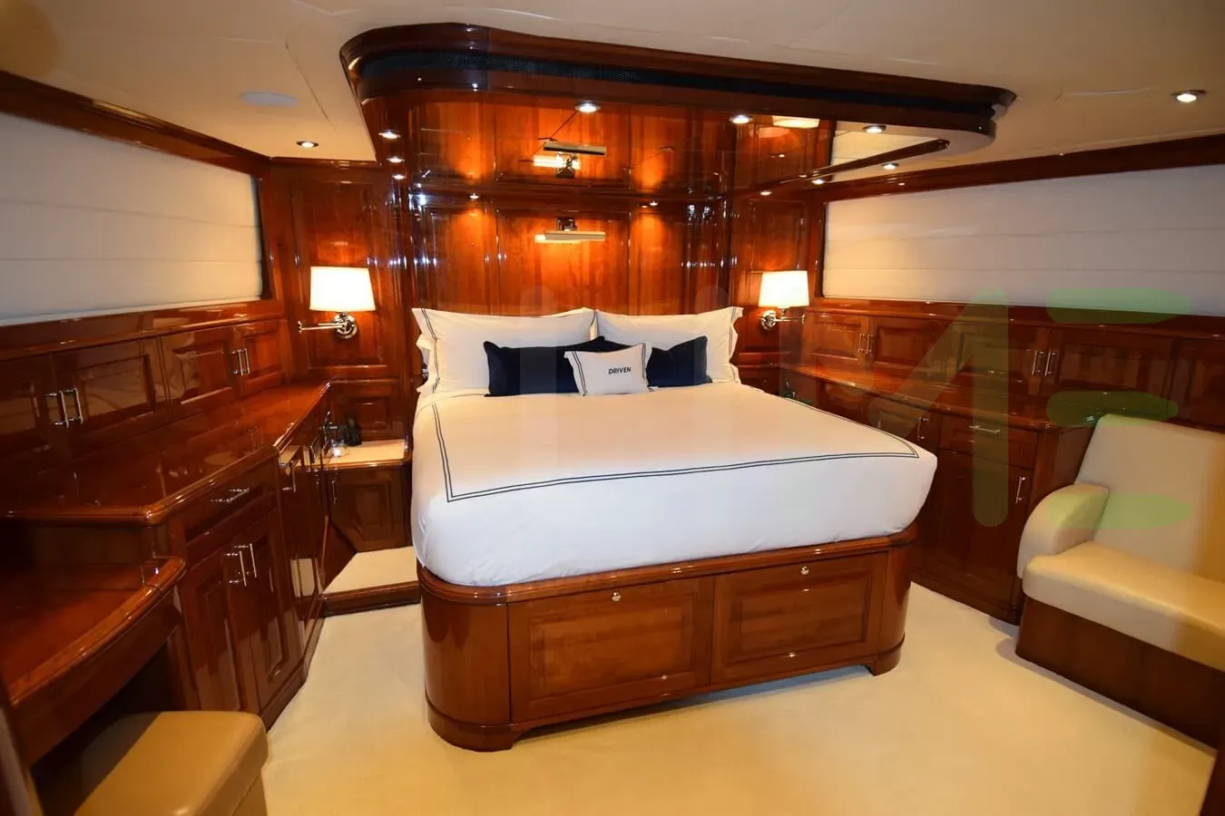 With a gross tonnage of 195, the DRIVEN yacht for charter provides ample interior space for enjoyment. DRIVEN offers accommodations for up to 10 guests in 4 lavishly appointed staterooms. She can also carry up to 4 crew onboard, including the Captain, to ensure a relaxed luxury yacht charter experience. The interior design by Dixon Yacht Design exudes a sense of luxury, seamlessly blending comfort with style.
