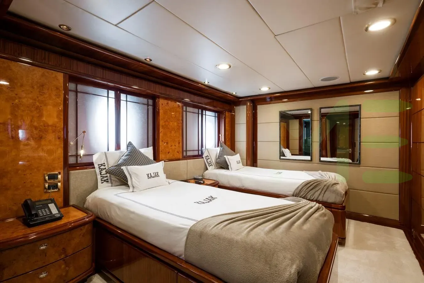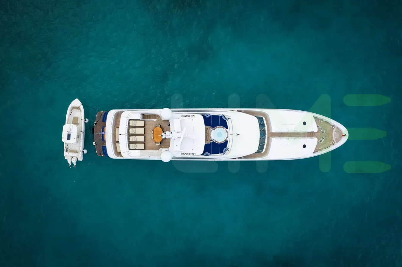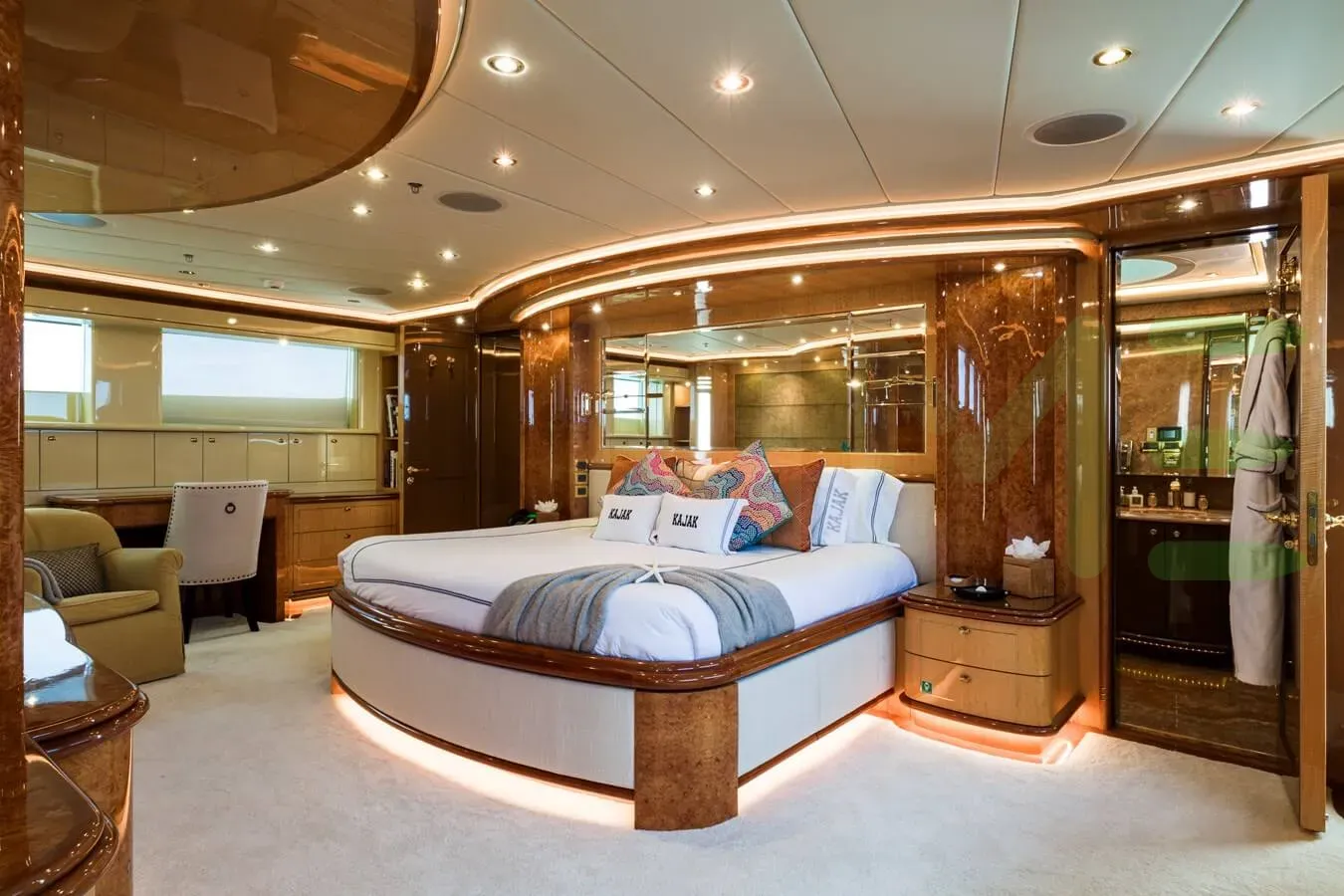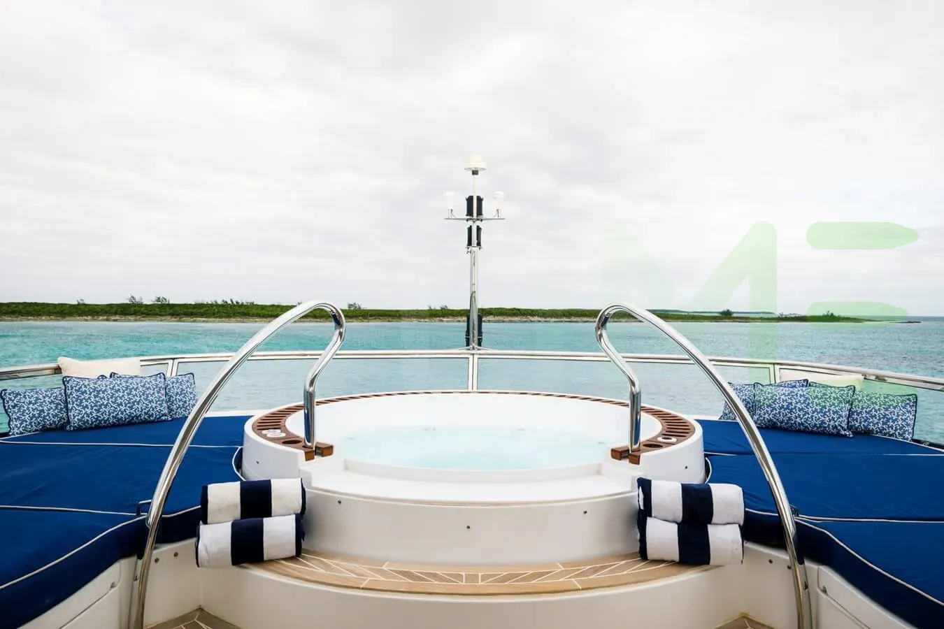 Her features include underwater lights, deck jacuzzi, WiFi and air conditioning.