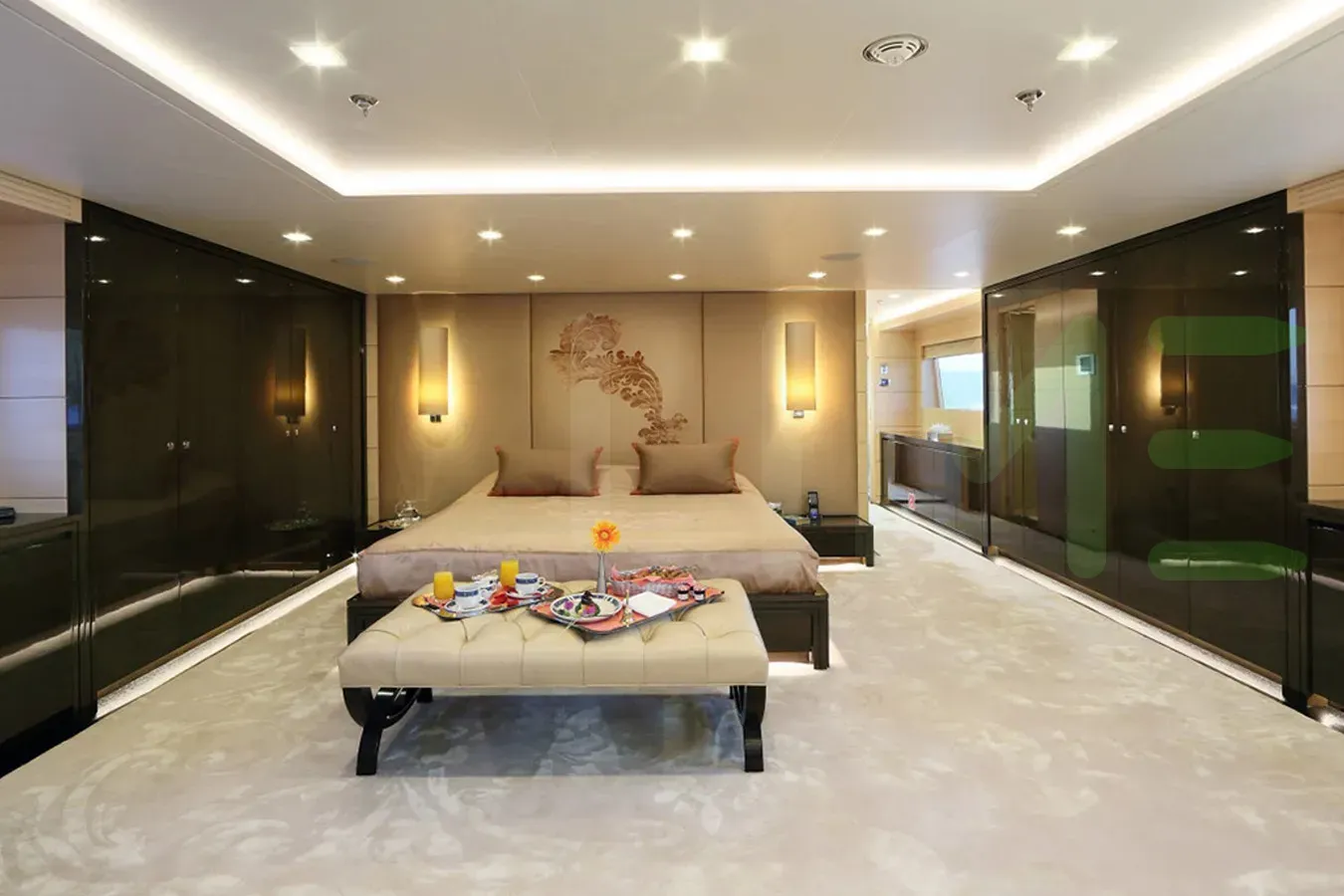 With a gross tonnage of 446, the EGO yacht for charter provides ample interior space for enjoyment. EGO offers accommodations for up to 12 guests in 7 lavishly appointed staterooms. She can also carry up to 10 crew onboard, including the Captain, to ensure a relaxed luxury yacht charter experience. The interior design by Terence Disdale Design exudes a sense of luxury, seamlessly blending comfort with style.
